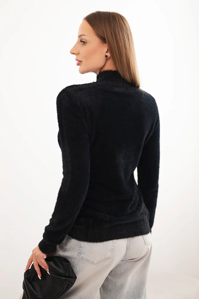Dámsky sveter z alpaky s polovičným golierom čierny univerzálne