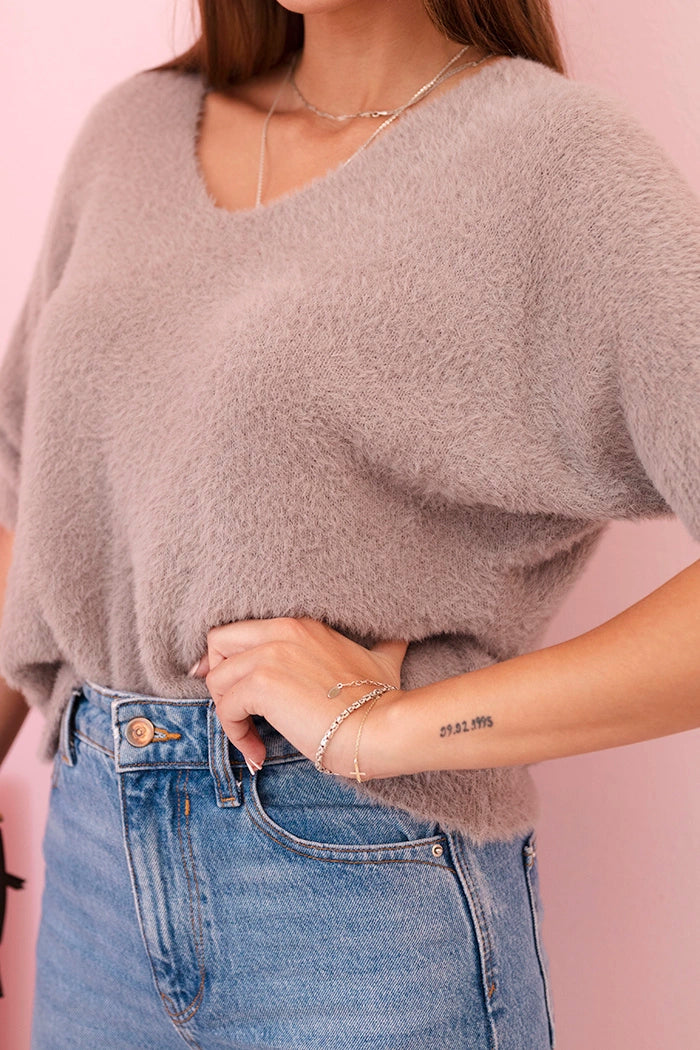 Dámsky sveter z jemného vlákna s výstrihom do V krátky rukáv ružový univerzálne