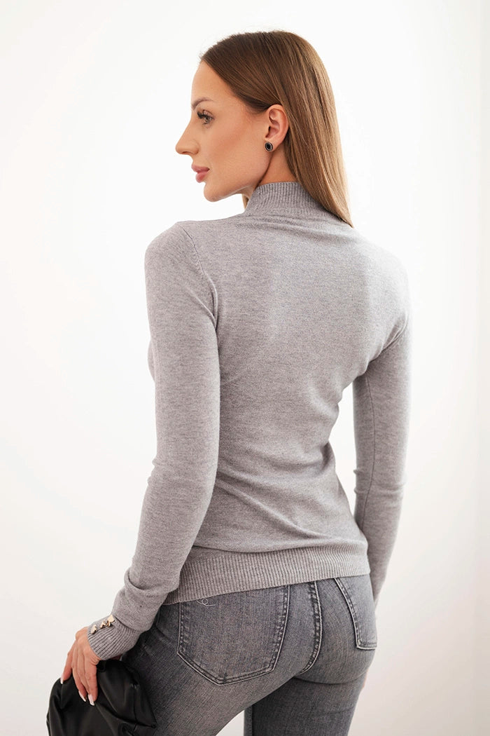 Dámsky sveter z viskózy s golierom a ozdobnými gombíkmi na rukávoch šedý univerzálne