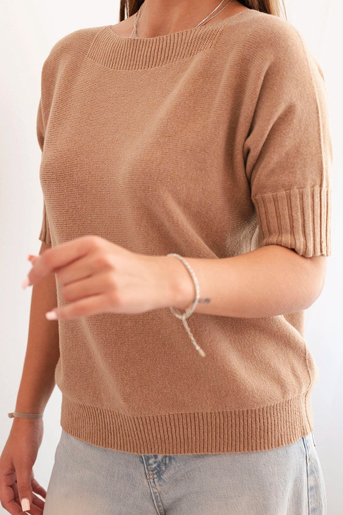 Dámsky sveter z viskózy s krátkym rukávom camelový univerzálne