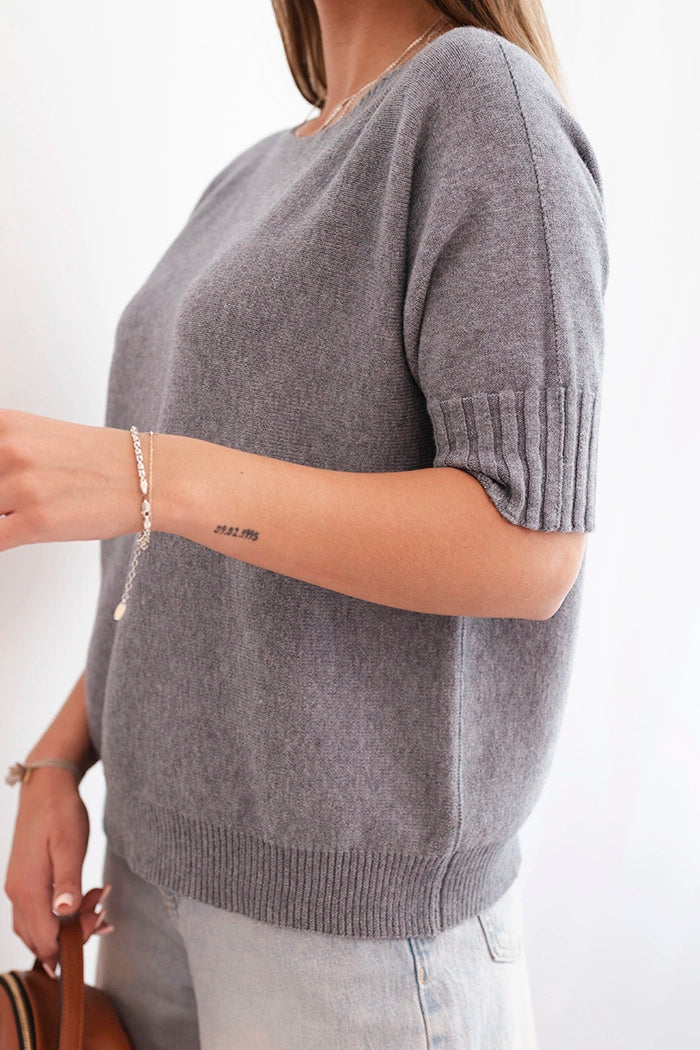 Dámsky sveter z viskózy s krátkym rukávom šedý univerzálne