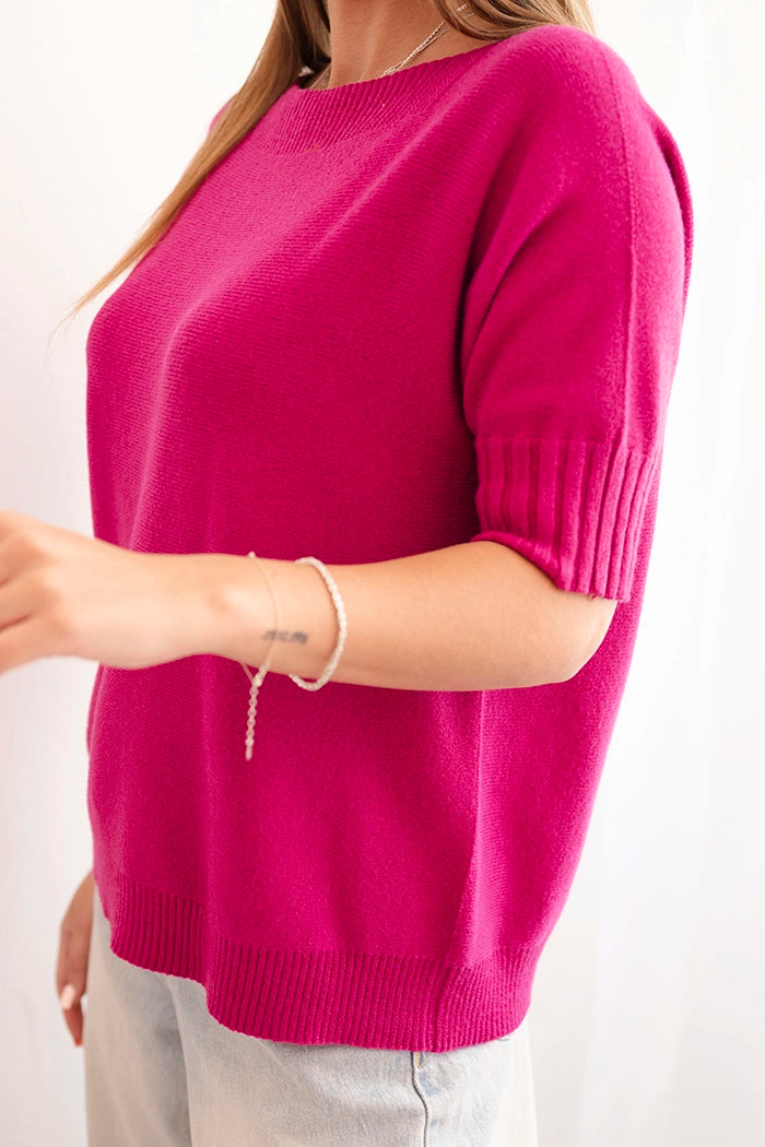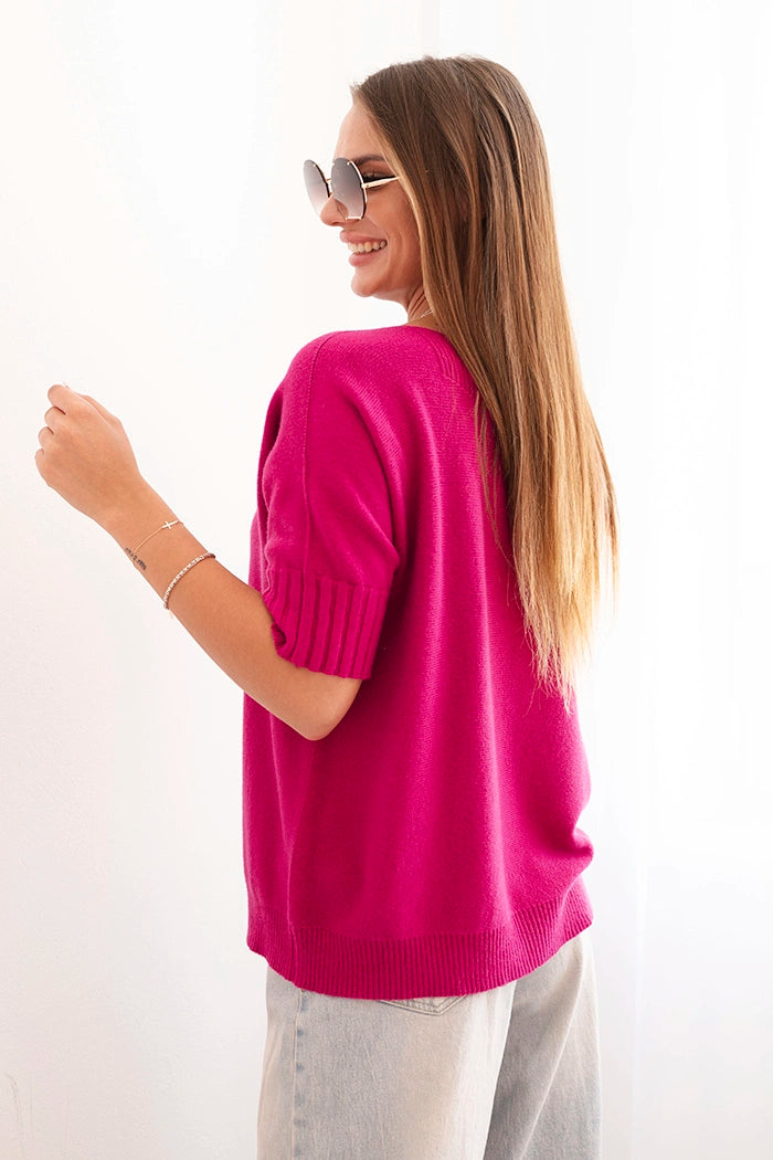 Dámsky sveter z viskózy s krátkym rukávom tmavo fialový univerzálne