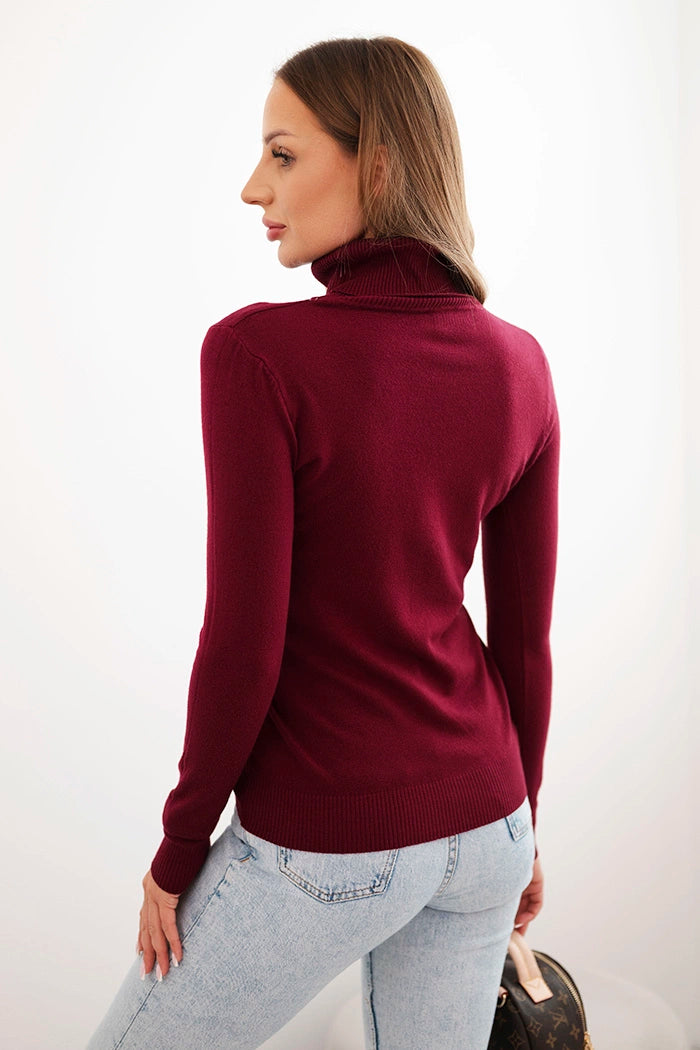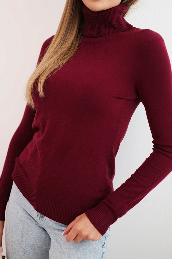 Dámsky sveter z viskózy s rolákom a dlhým rukávom bordový univerzálne