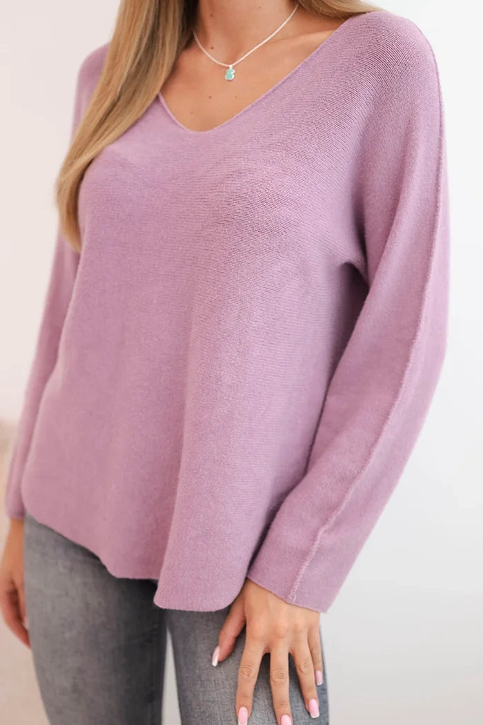 Dámsky sveter z viskózy s výstrihom do V fialový univerzálne