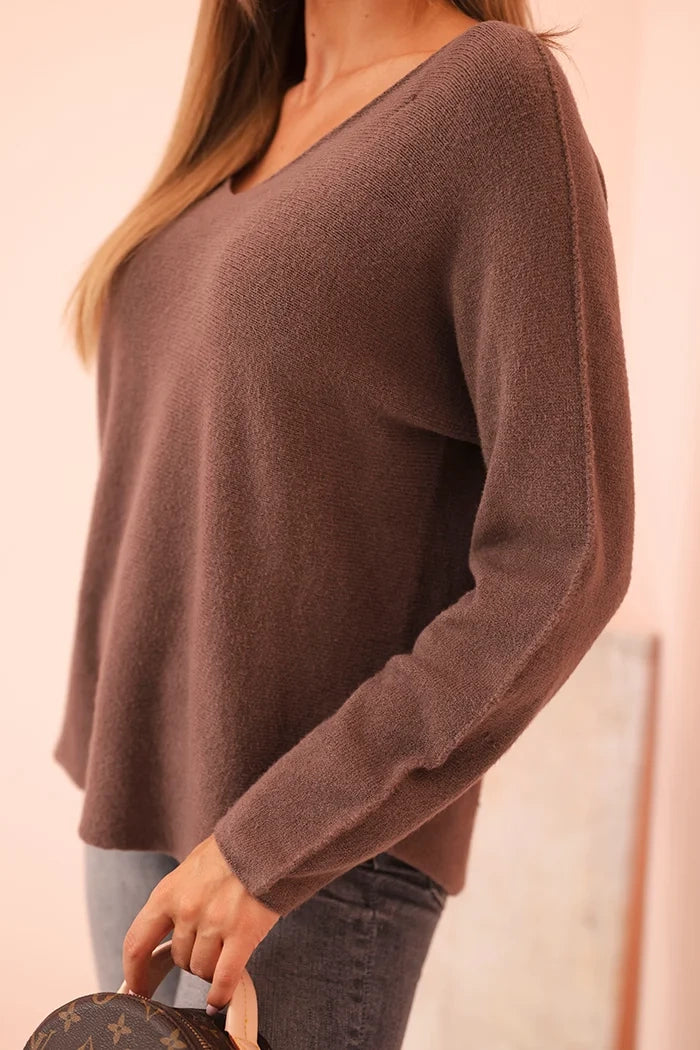 Dámsky sveter z viskózy s výstrihom do V mocca univerzálne