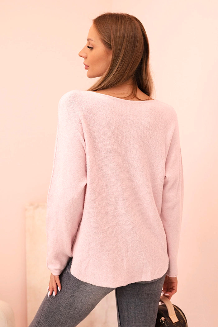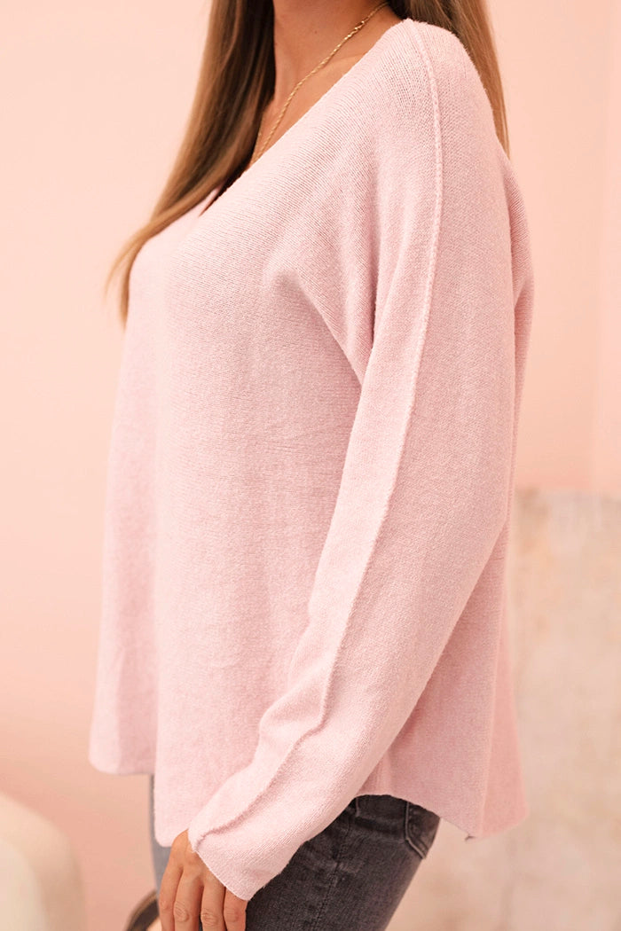 Dámsky sveter z viskózy s výstrihom do V tmavý pudrový ruž univerzálne