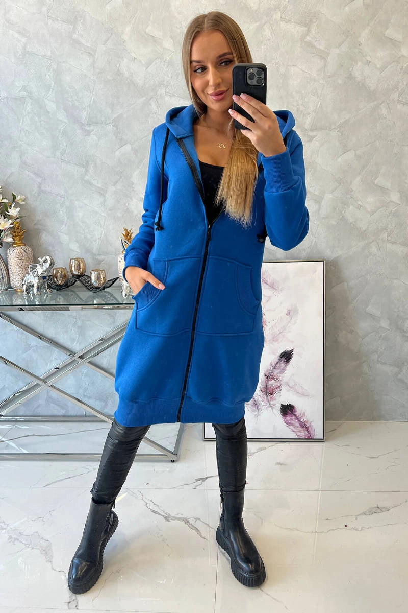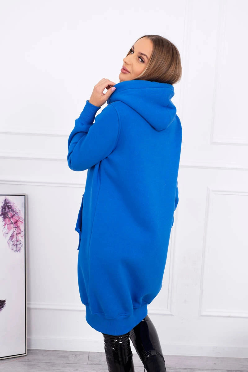 Dlhá zateplená mikina s kapucňou chrpa modrá farba univerzálne