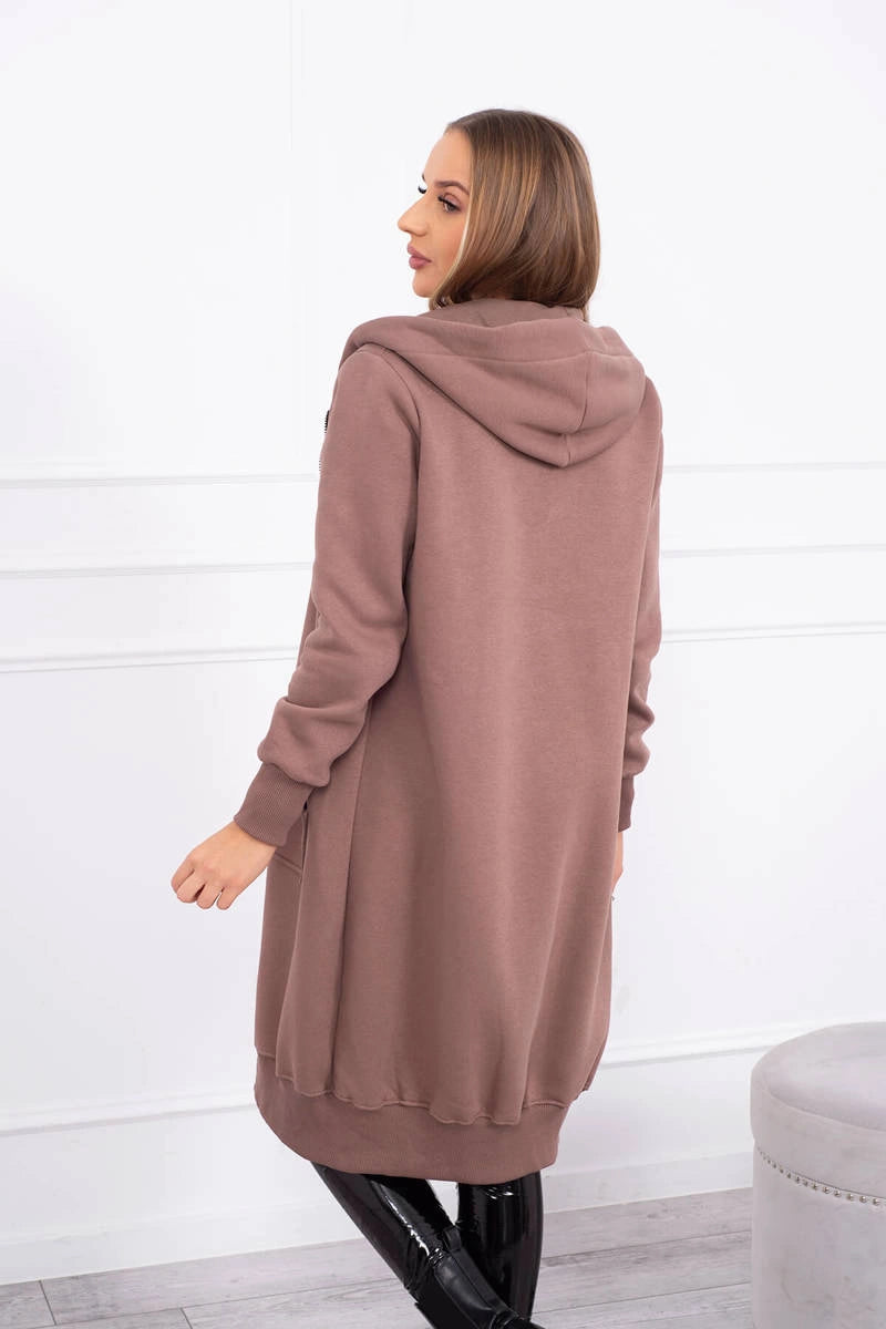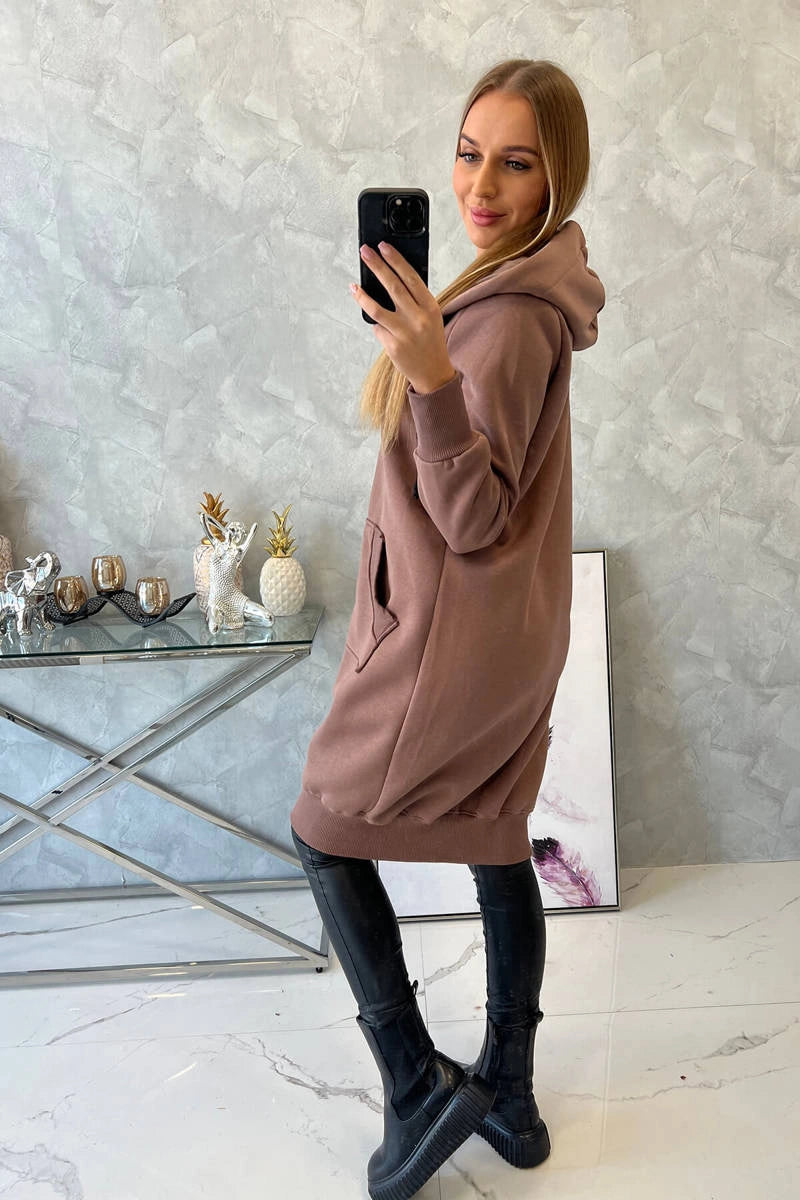 Dlhá zateplená mikina s kapucňou mocca univerzálne