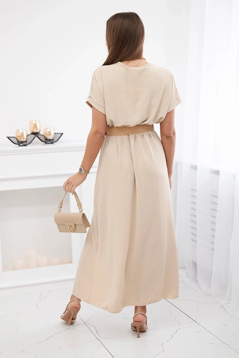 Dlhé šaty s ozdobným opaskom béžová univerzálne