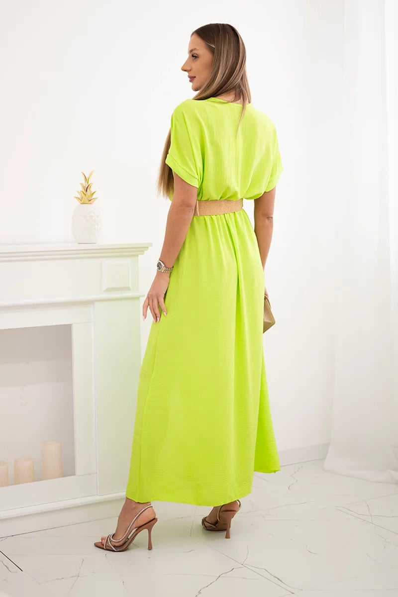 Dlhé šaty s ozdobným opaskom neónovo zelená univerzálne