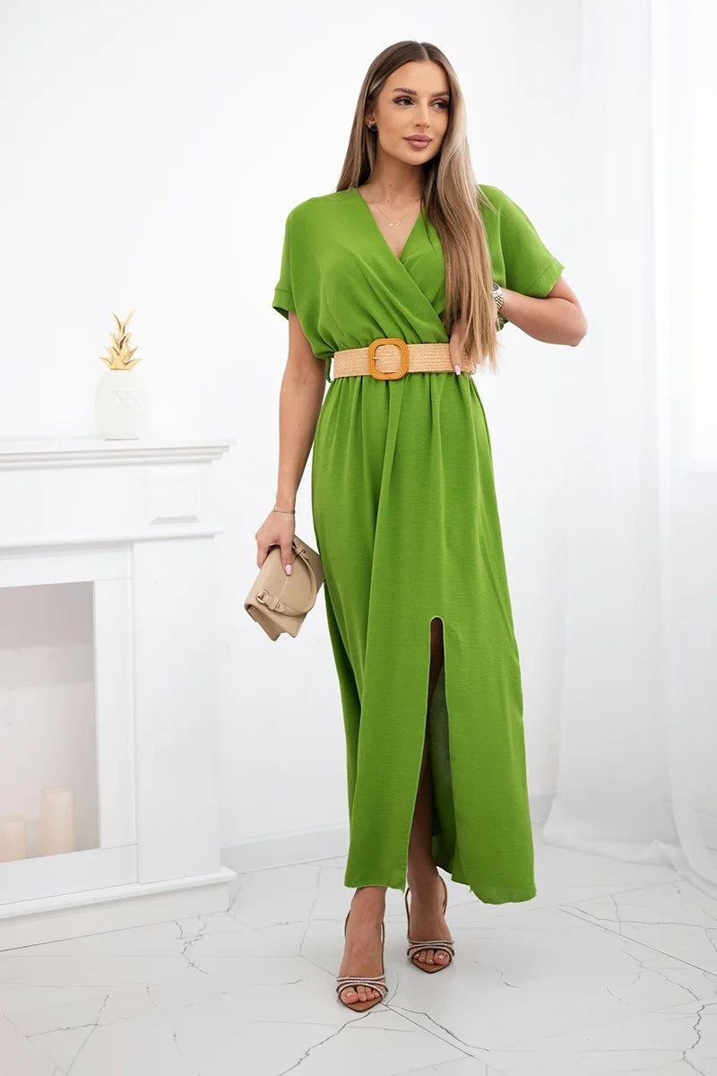 Dlhé šaty s ozdobným opaskom oliva univerzálne