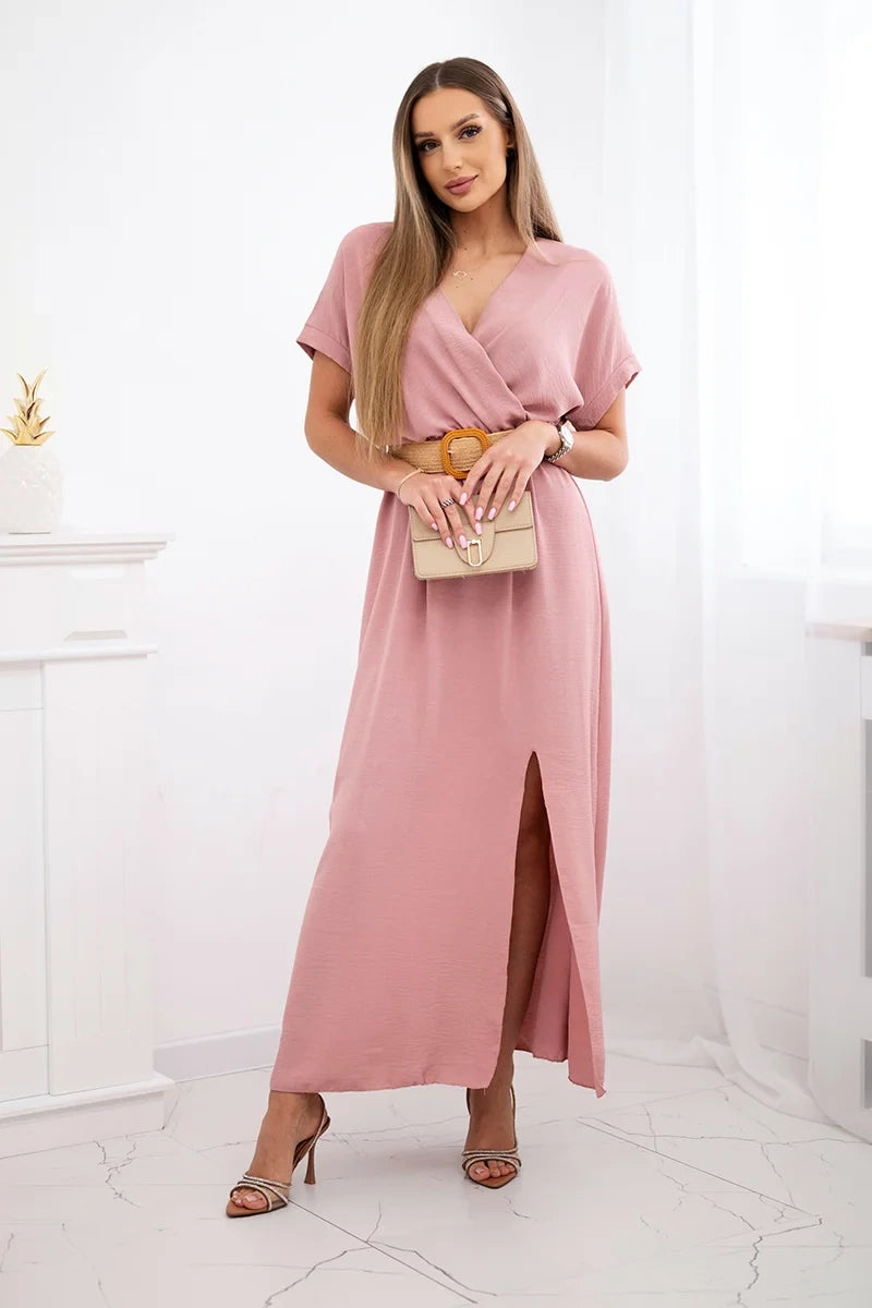 Dlhé šaty s ozdobným opaskom tmavá púdrová ružová univerzálne
