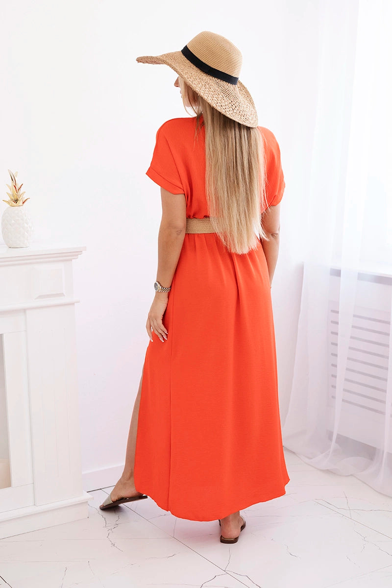 Dlhé šaty s ozdobným opaskom tmavo oranžová univerzálne