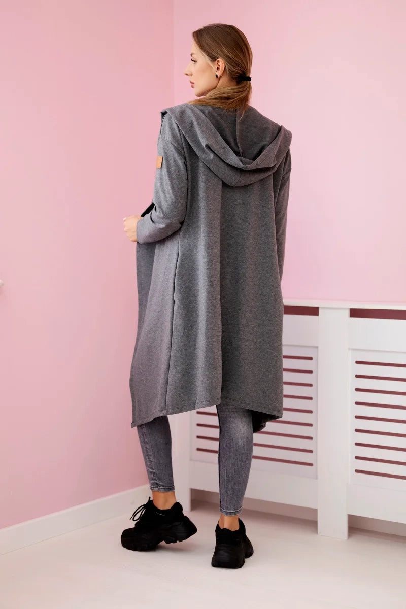 Dlhý kardigan s kapucňou grafitu univerzálne