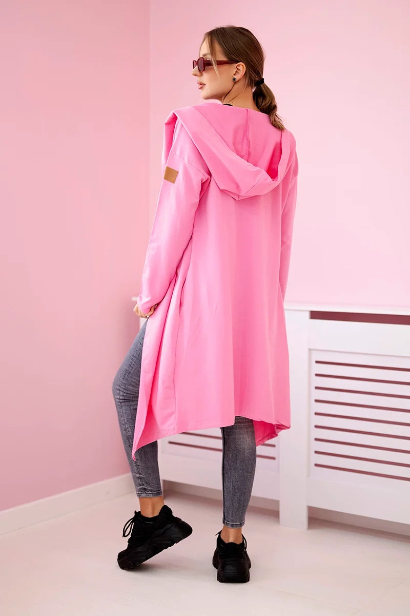 Dlhý kardigan s kapucňou svetlo ružová univerzálne