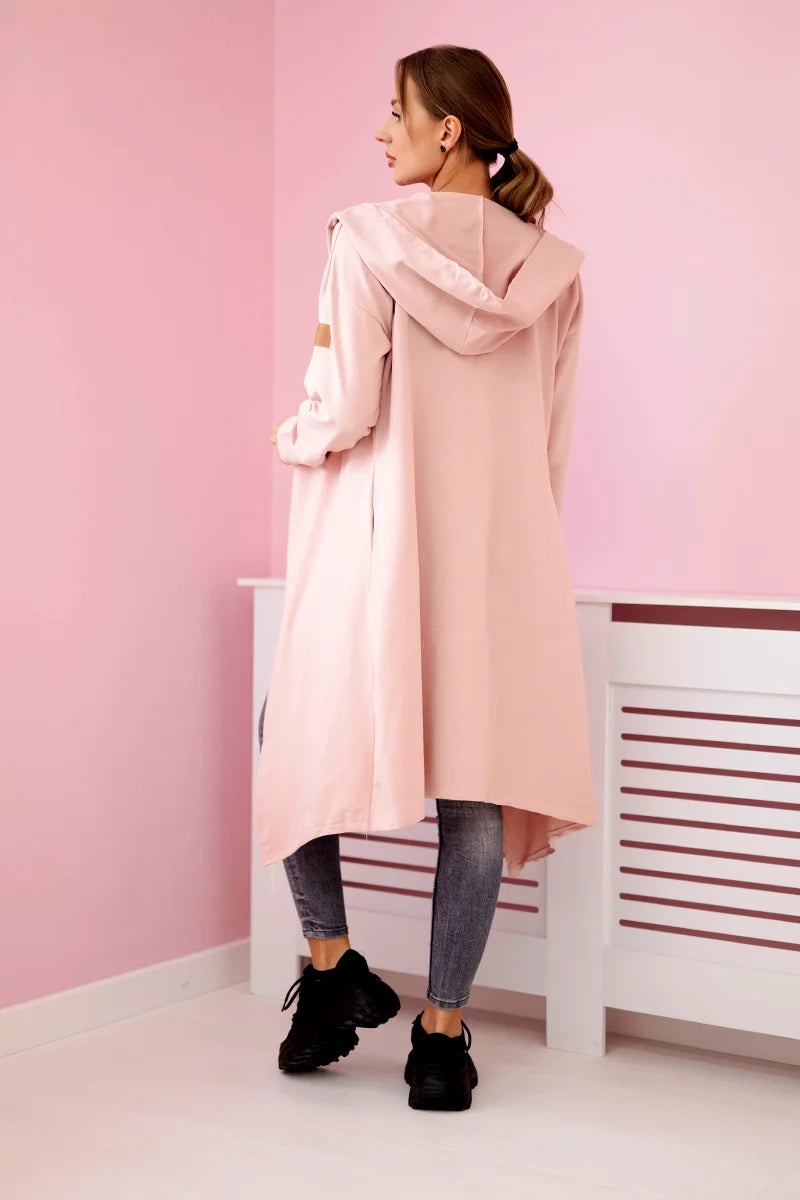 Dlhý kardigan s kapucňou tmavý prášková ružová univerzálne