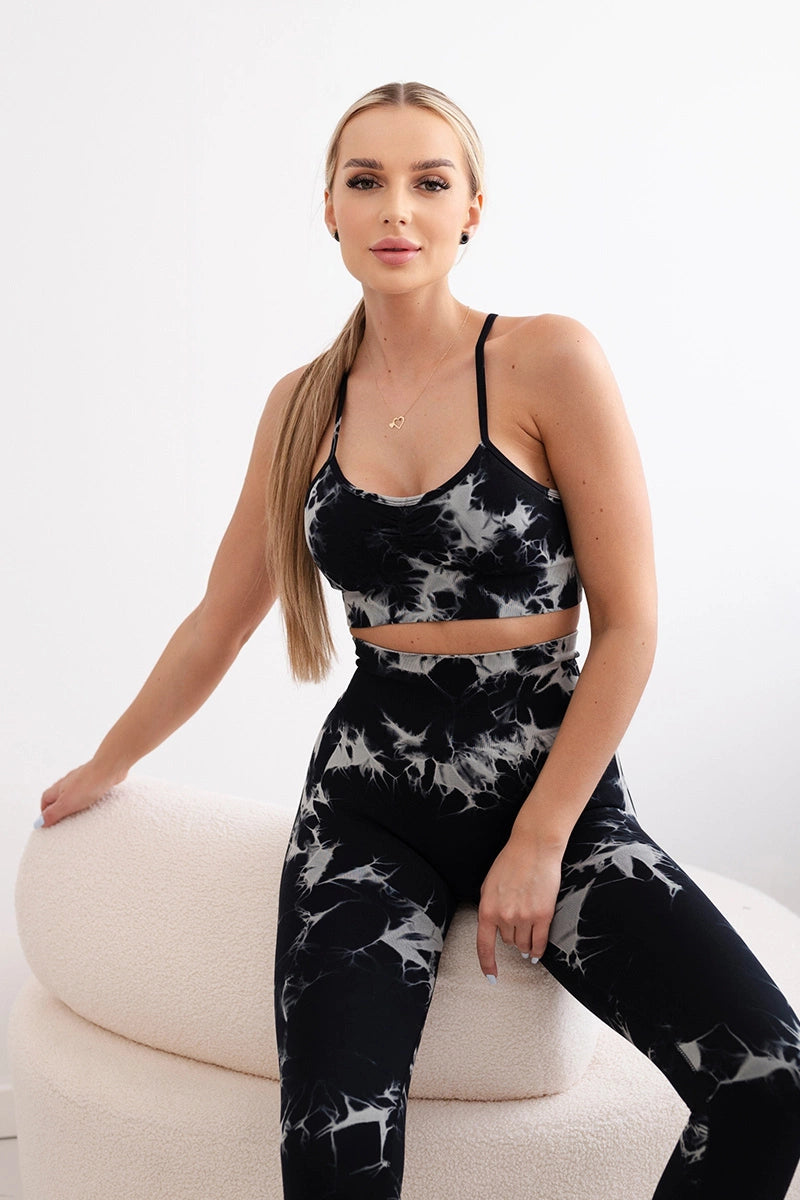 Fitness set top s nastaviteľnými ramienkami + push up legíny čierny M/L