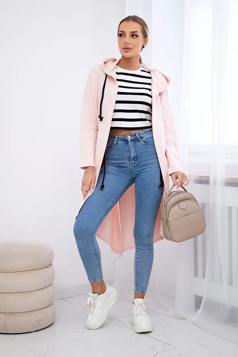 Kardigán s dlhším chrbtom prášková ružová univerzálne