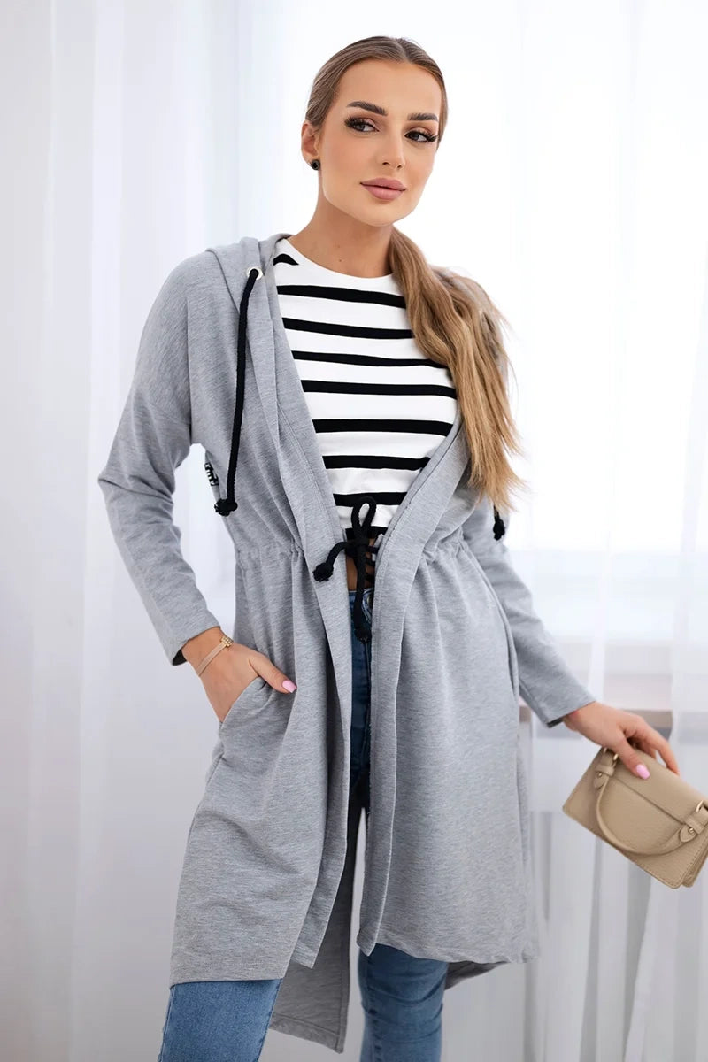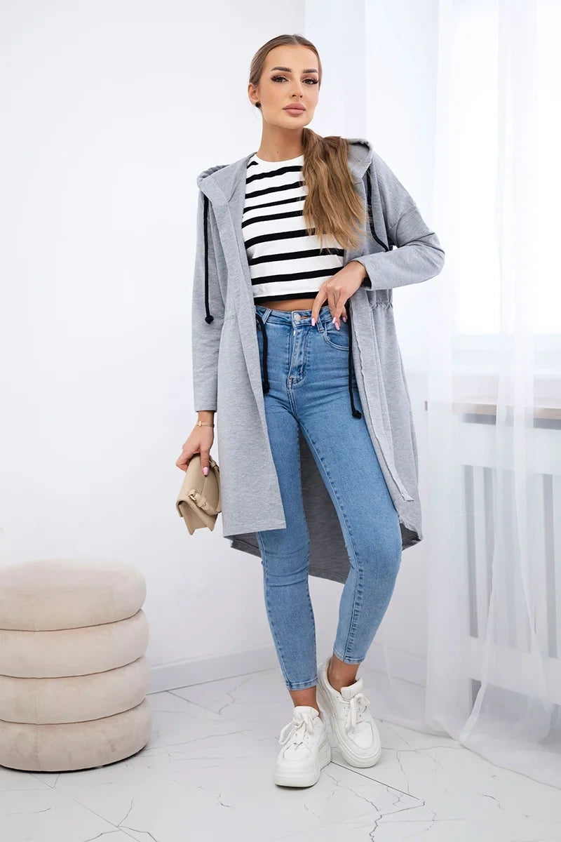 Kardigán s dlhším chrbtom šedá univerzálne