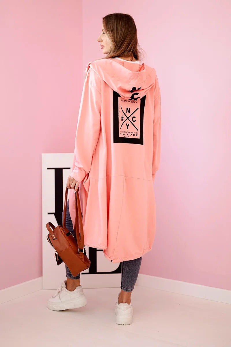 Kardigán s kapucňou oversize marhuľa univerzálne