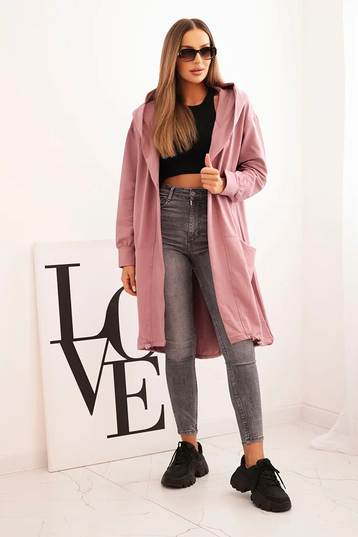 Kardigán s kapucňou oversize tmavo ružová univerzálne