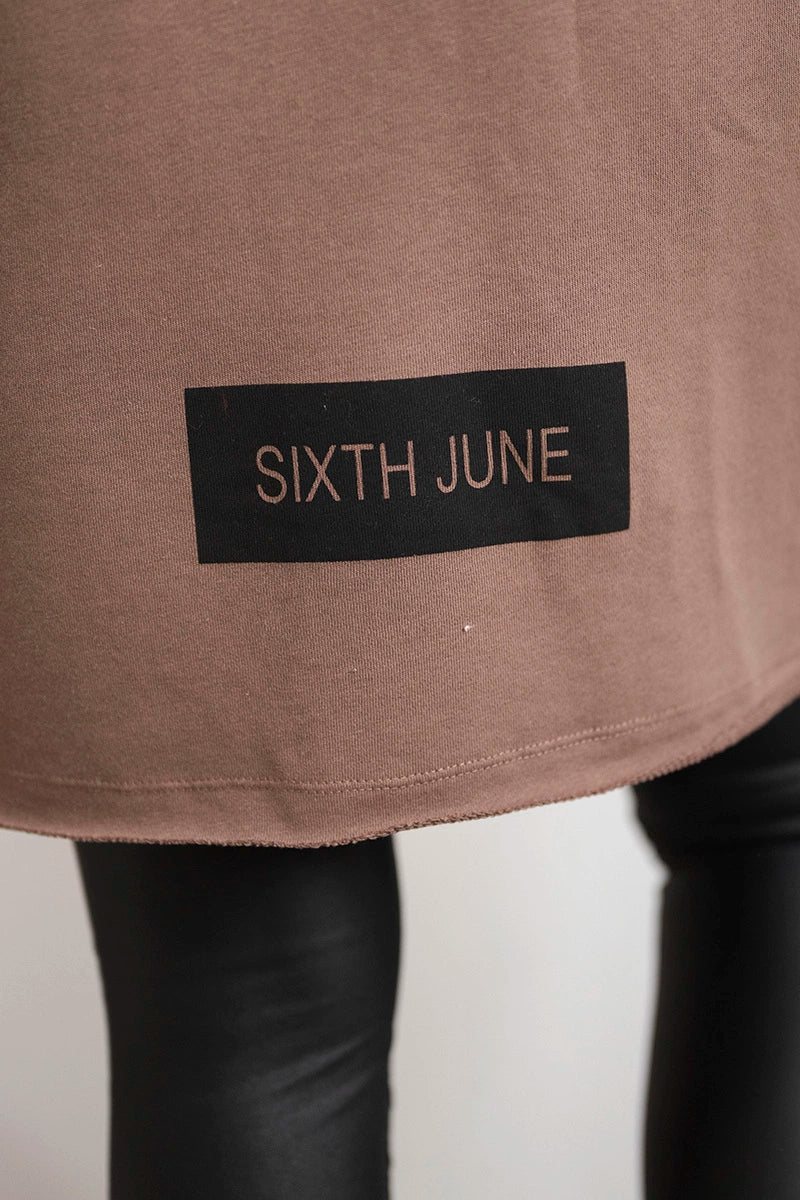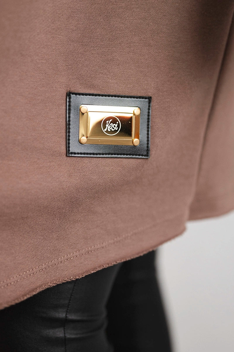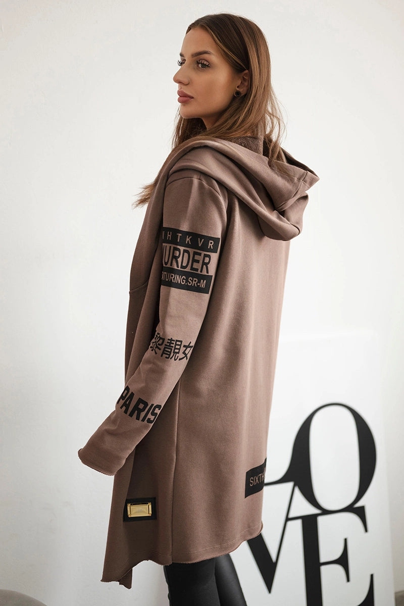 Kardigán s titulkami mocca univerzálne