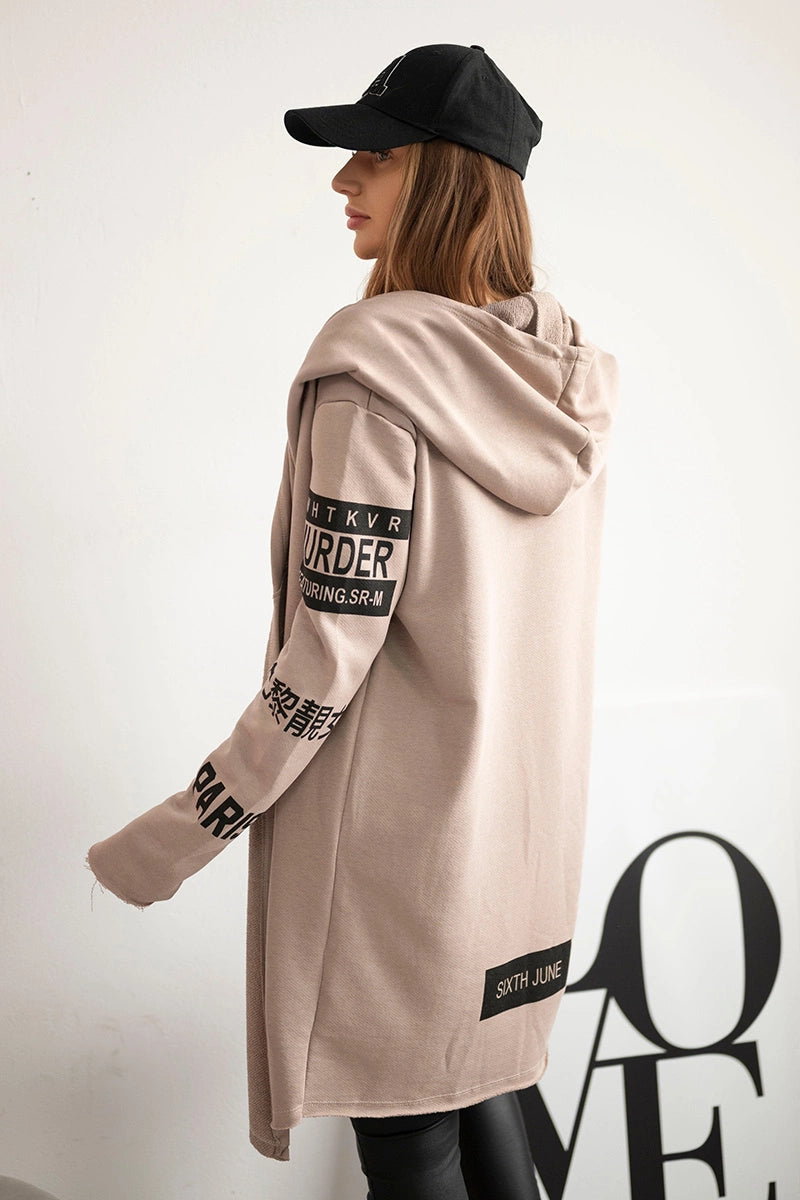 Kardigán s titulkami tmavo béžová univerzálne