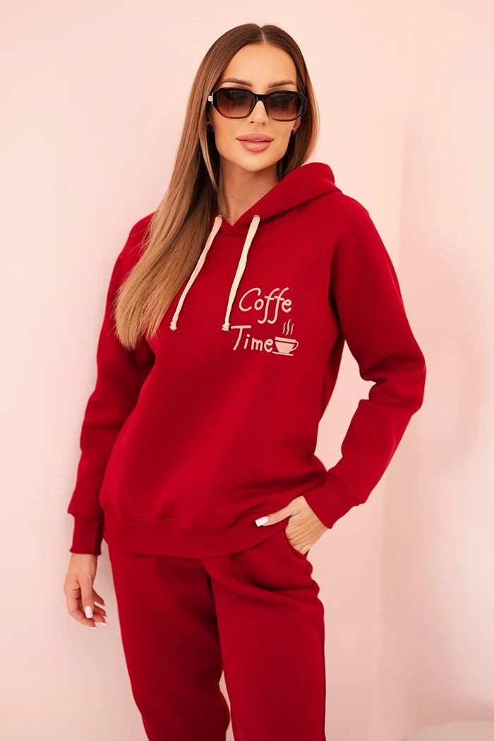 Dámský bavlněný zateplený komplet Coffe Time bordó