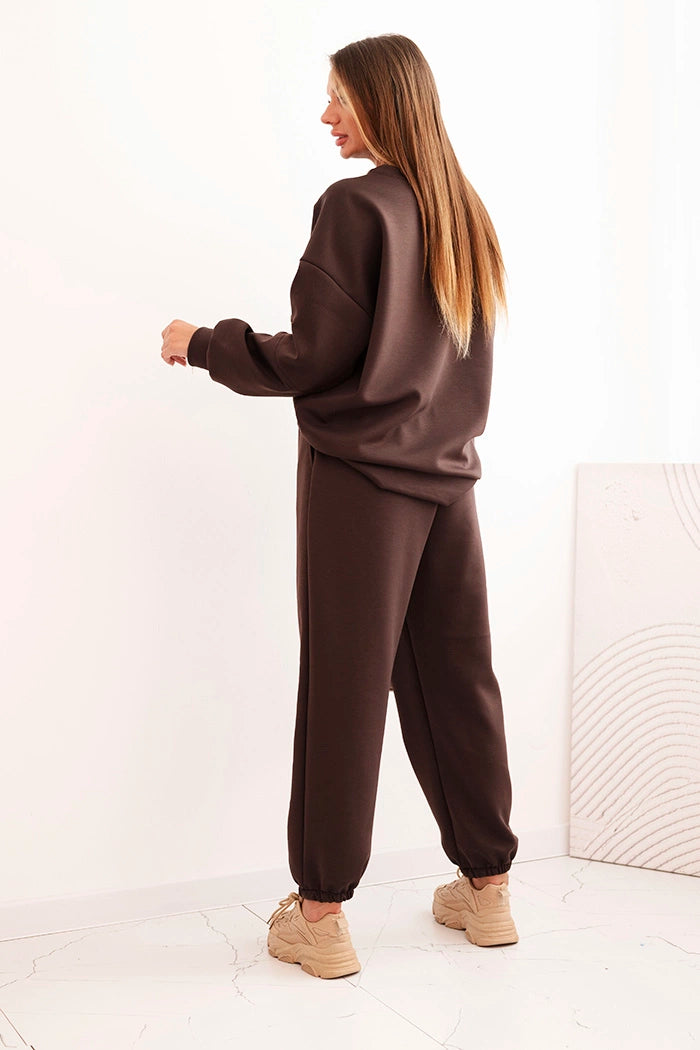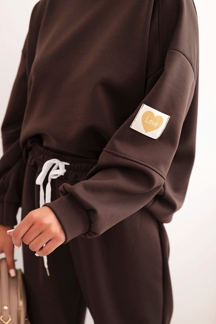Stylový dámský komplet, který spojuje pohodlí s módním designem. Mikina s efektním, lesklým motivem na přední straně přitahuje pohledy a dodává celé stylizaci výjimečný charakter. Kalhoty s jednoduchým střihem a elastickým pasem a šňůrkou zajišťují pohodlí a volnost pohybu.