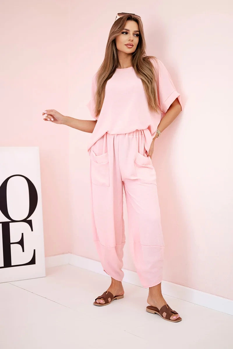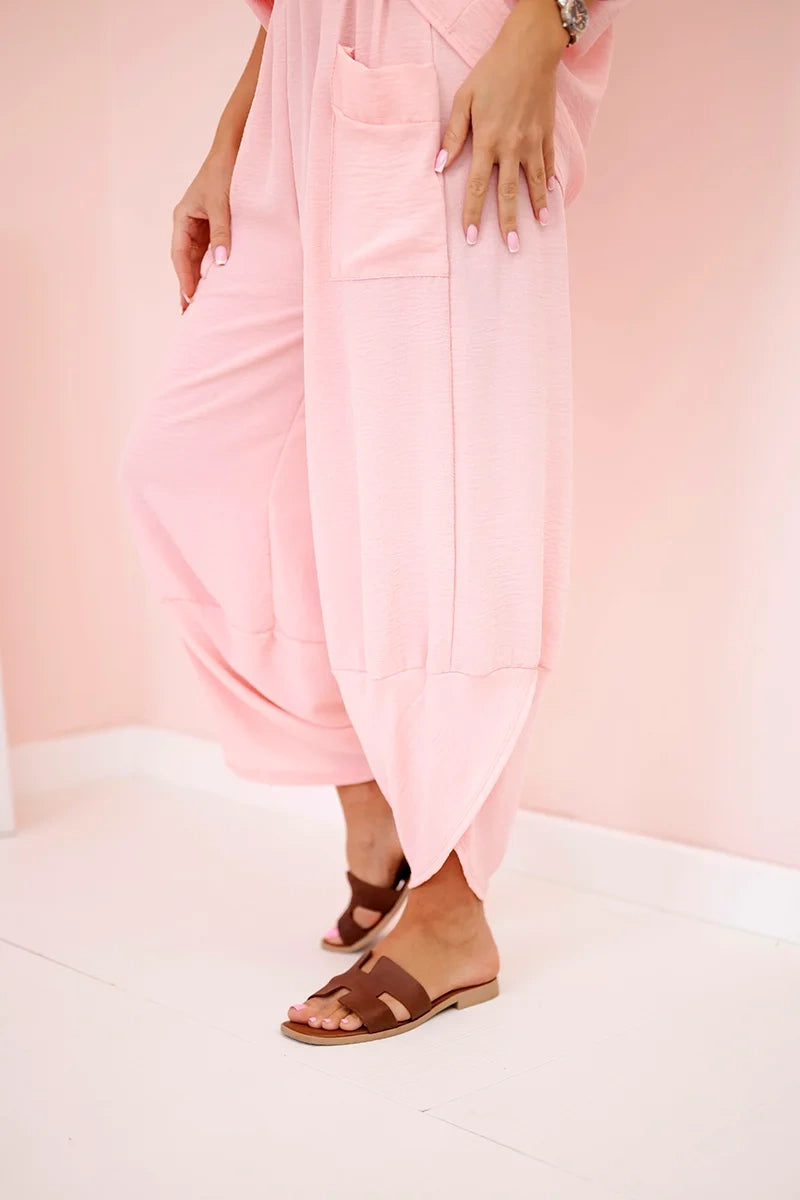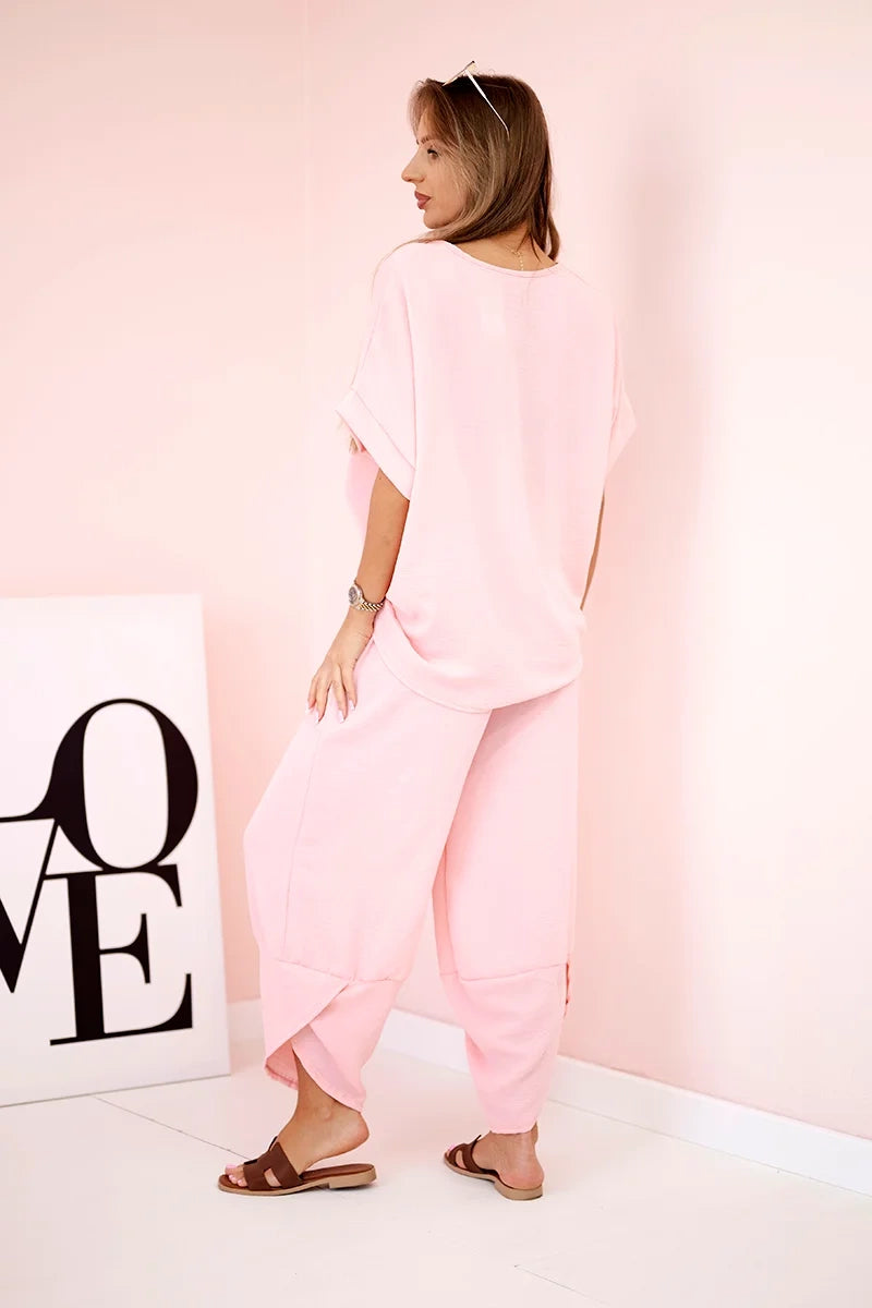 Komplet z viskózy halenka a kalhoty pudrová růžová