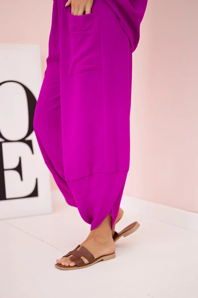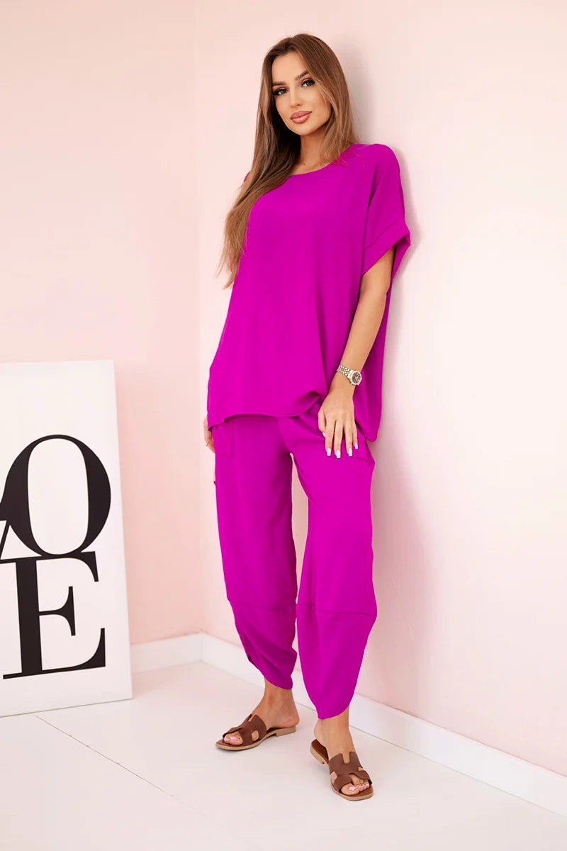Komplet z viskózy halenka a kalhoty tmavá fialová univerzálne