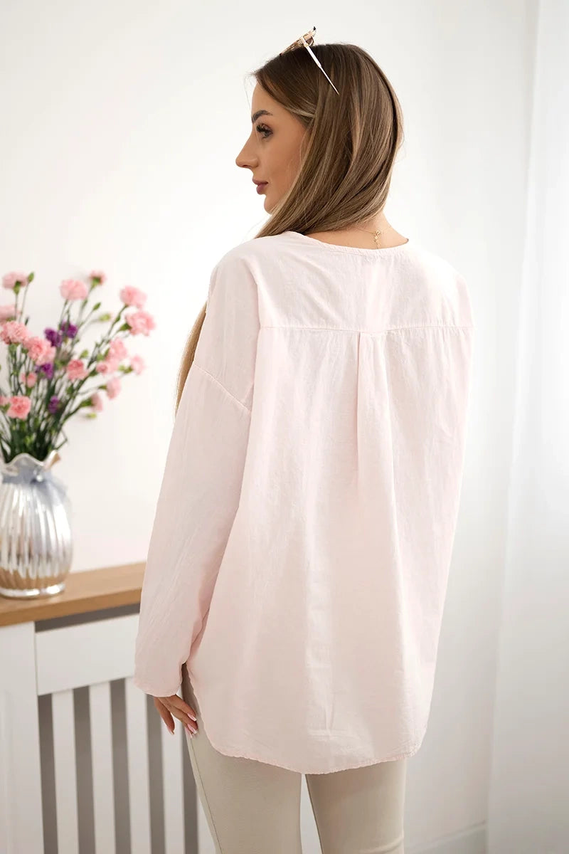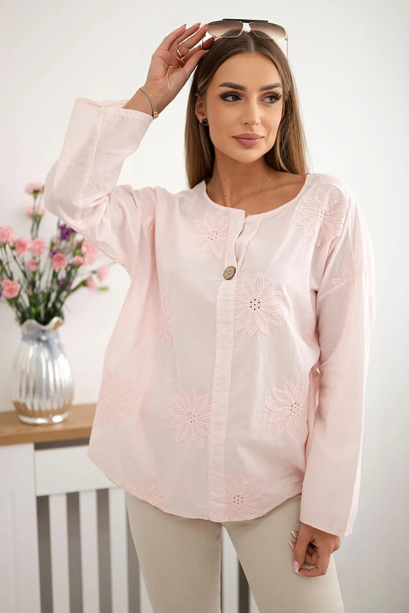 Košeľová blúzka s vyšívaným vzorom púdrová ružová univerzálne