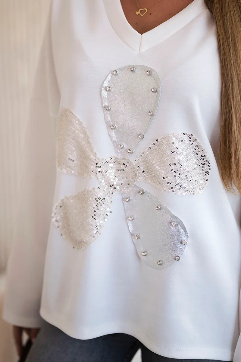 Maslová mikina s ozdobným kvetom ecru univerzálne
