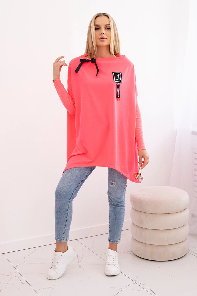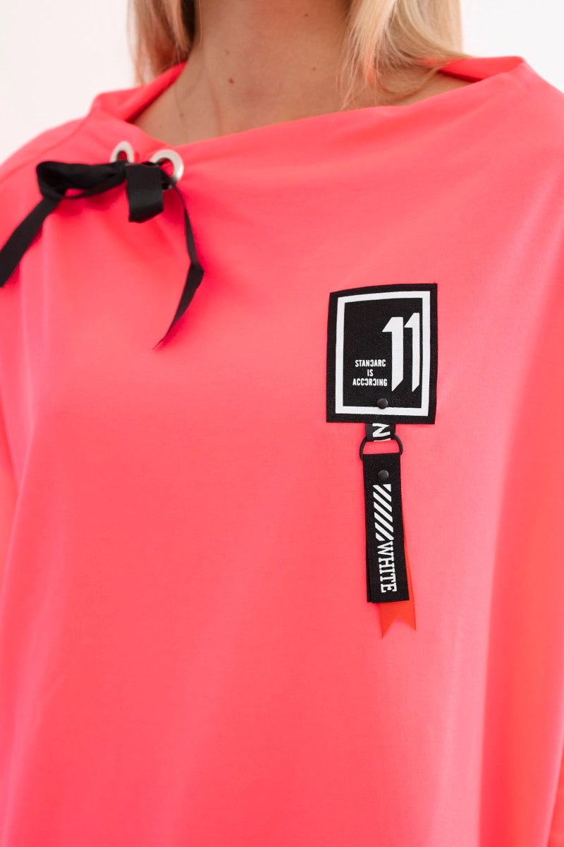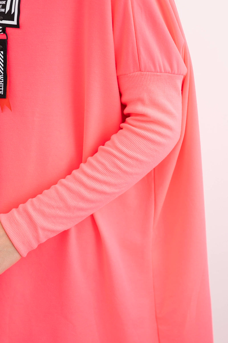 Mikina oversize s asymetrickými stranami ružový neón univerzálne