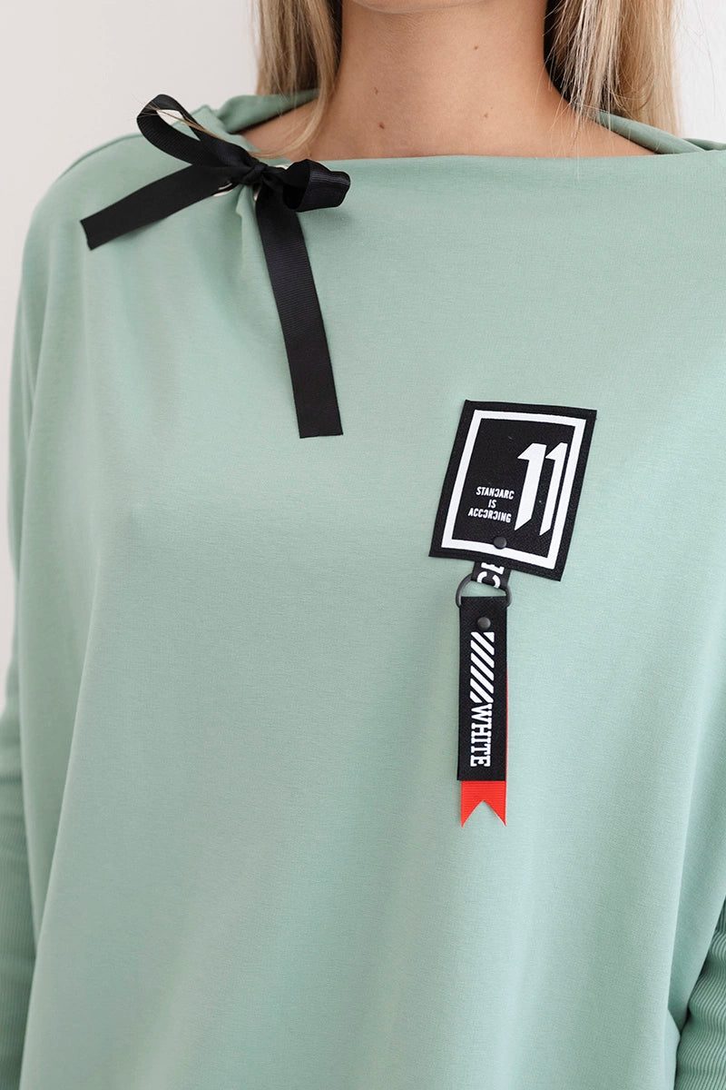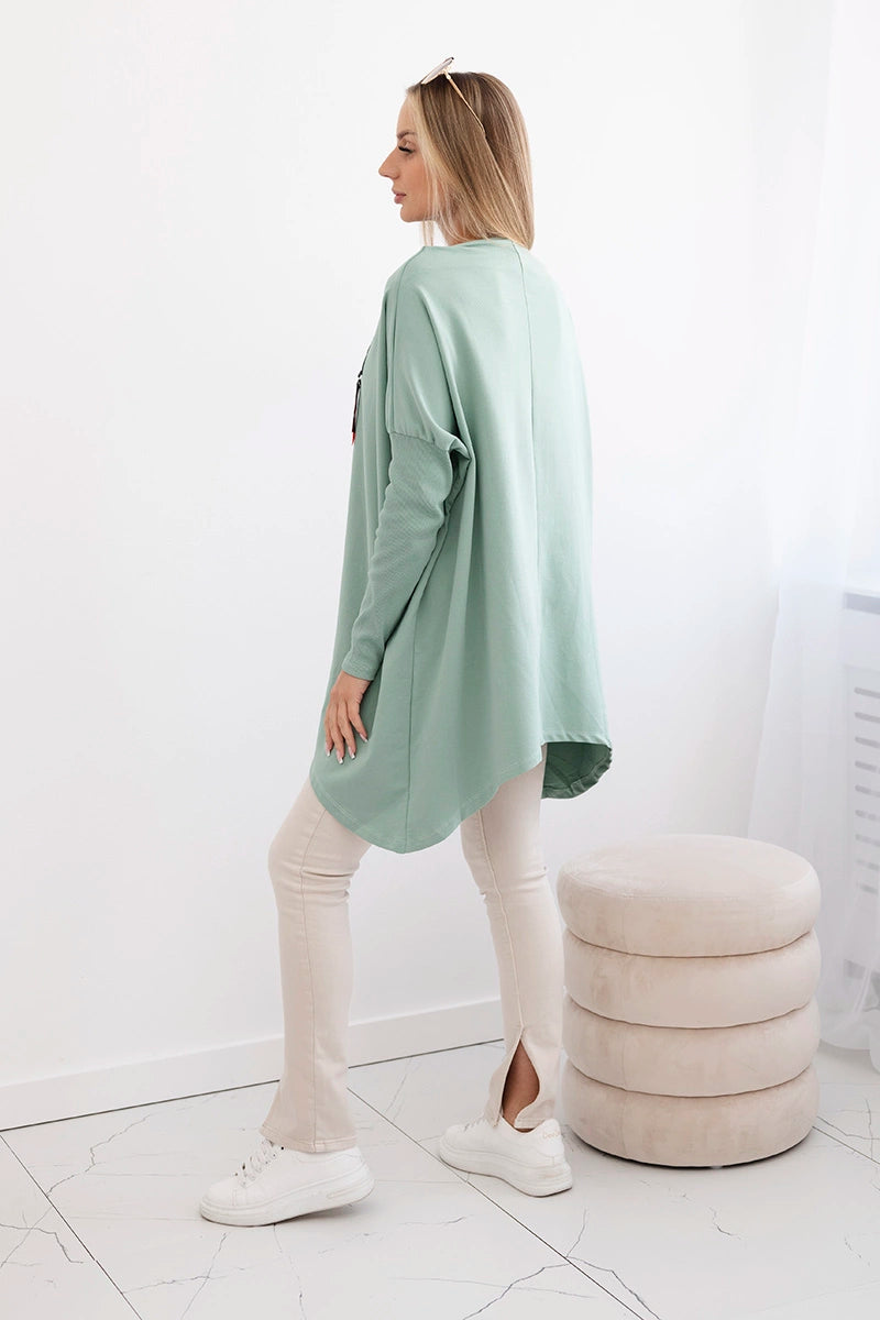 Mikina oversize s asymetrickými stranami tmavá mäta univerzálne