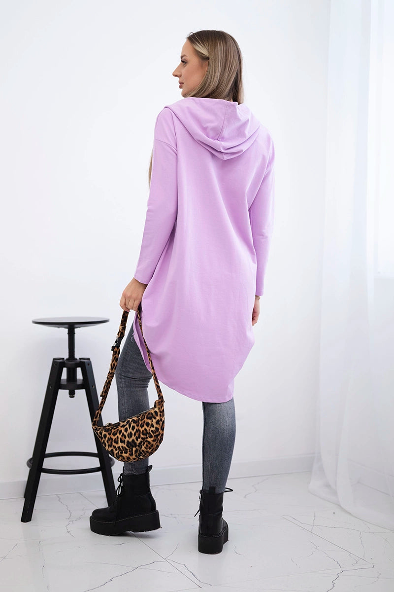 Mikina s dlhým chrbtom a kapucňou tmavo fialová univerzálne