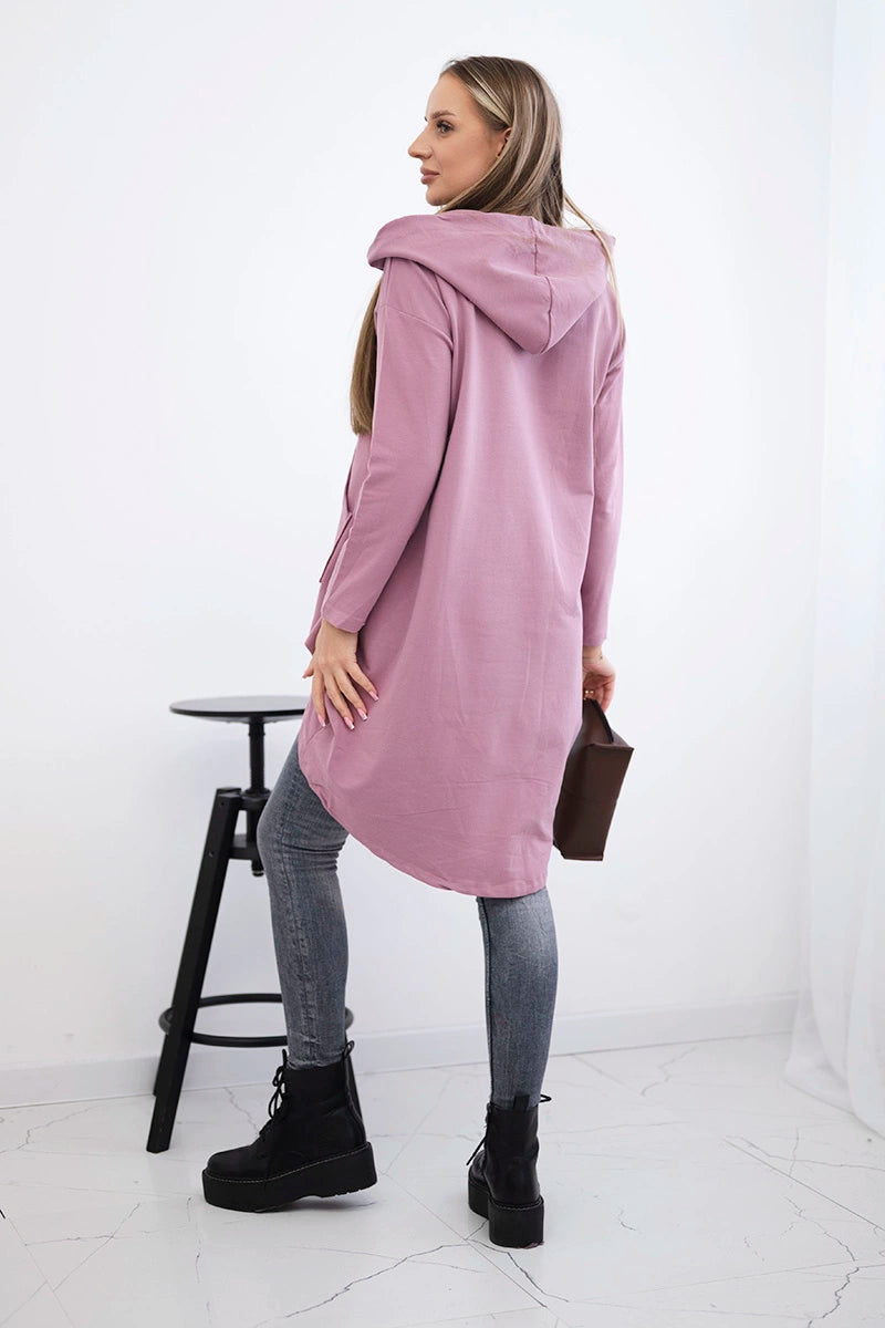 Mikina s dlhým chrbtom a kapucňou tmavo ružová univerzálne
