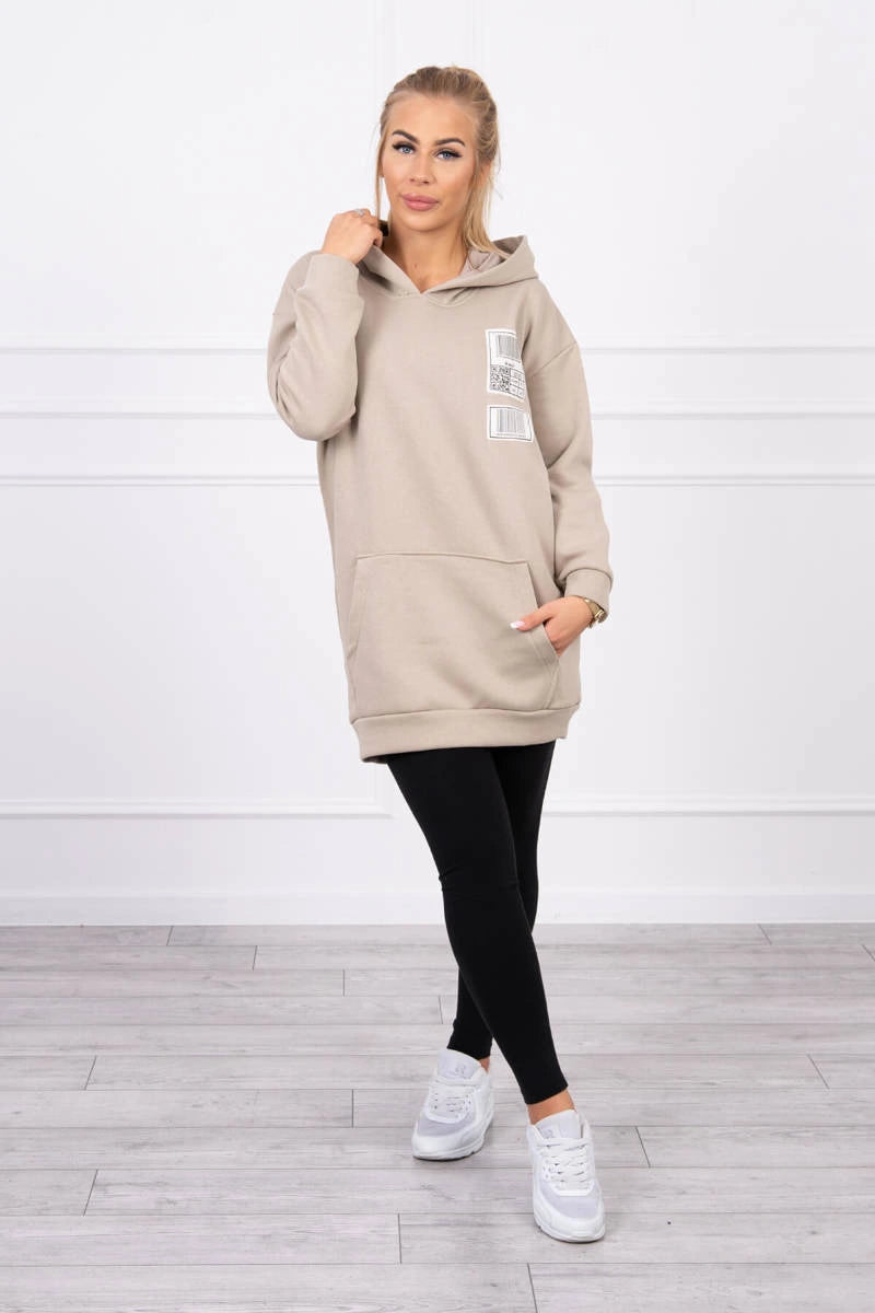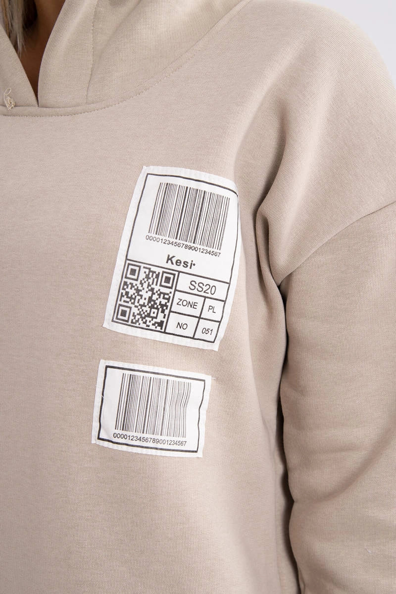 Mikina s kapucňou a nášivkami béžová univerzálne