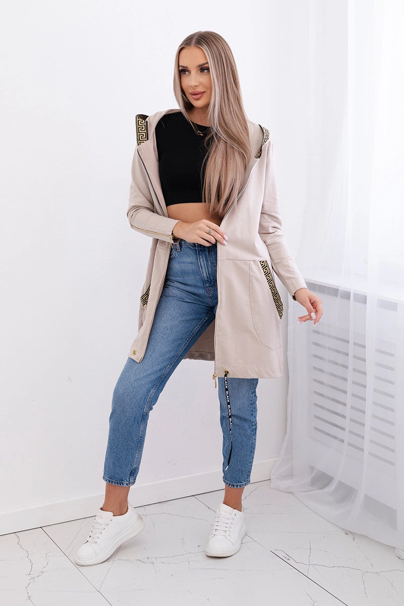 Mikina s ozdobnou páskou béžová univerzálne