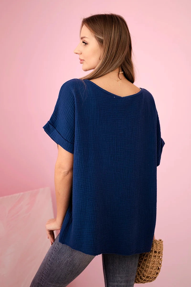 Mušelínová blúzka s náhrdelníkom námornícka modrá univerzálne