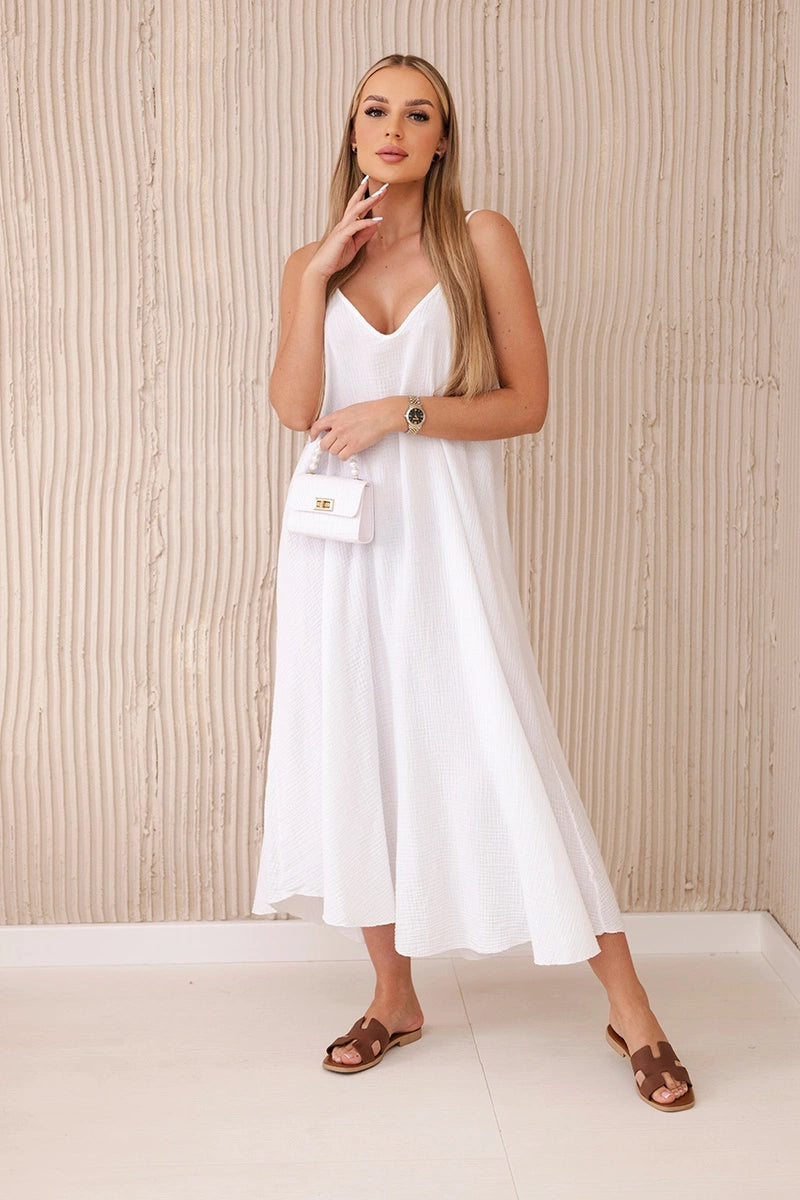 Mušelínové šaty s ramienkami biely univerzálne