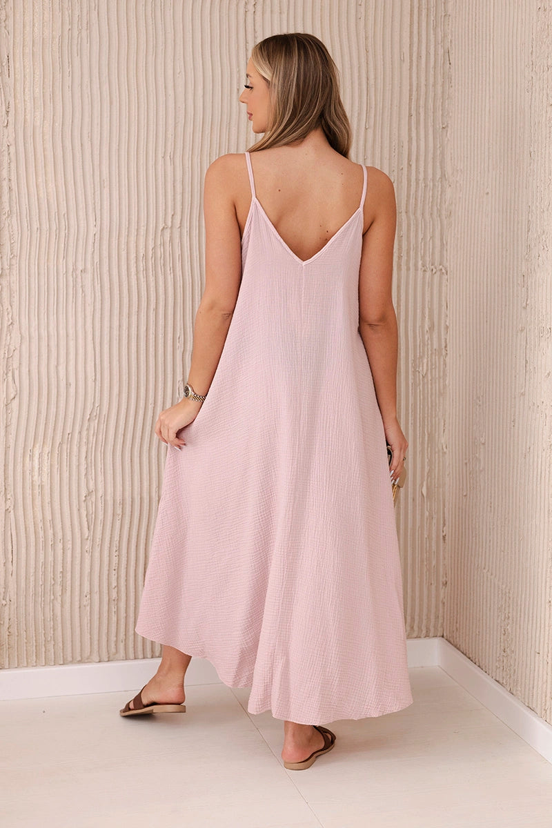 Mušelínové šaty s ramienkami tmavý púder ružový univerzálne
