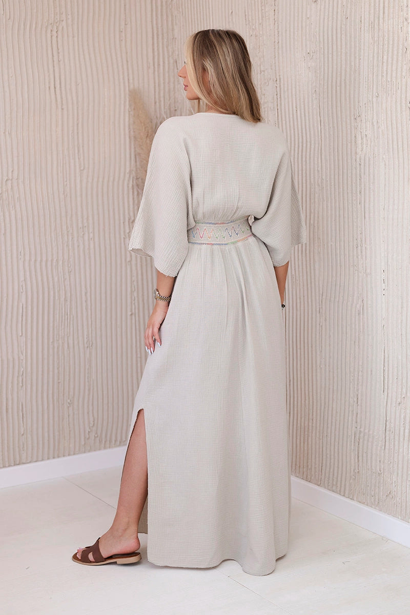 Mušelínové šaty s výšivkou v páse béžový univerzálne