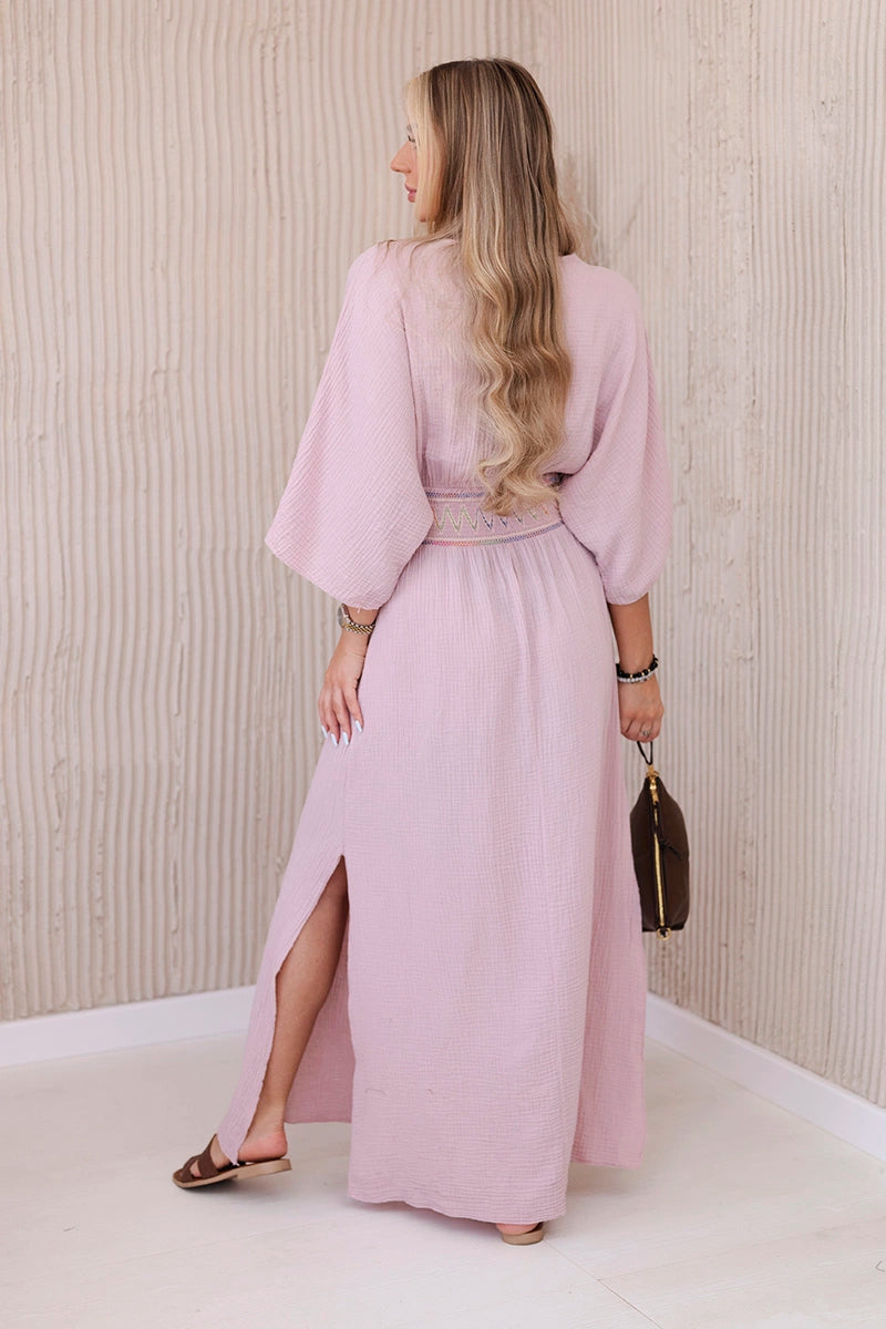 Mušelínové šaty s výšivkou v páse tmavo ružová univerzálne