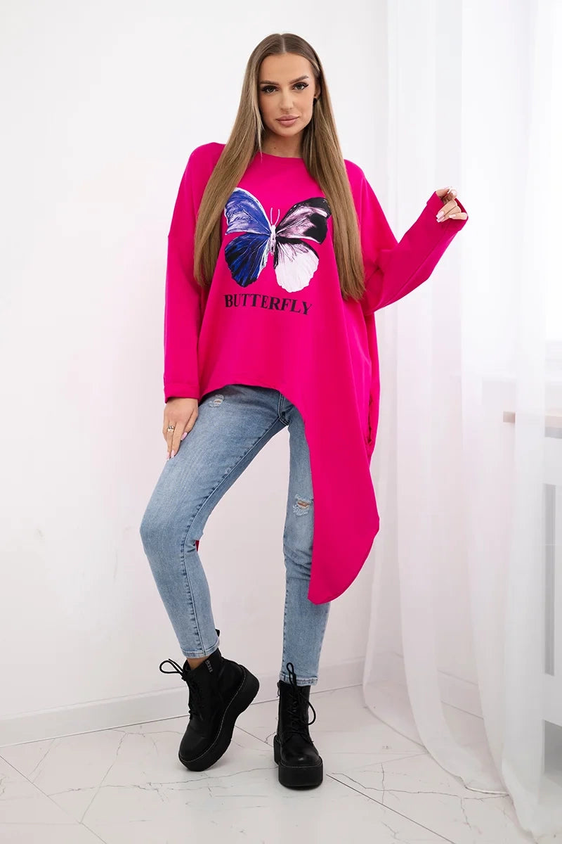 Nadrozmerná blúzka s potlačou fuchsiová univerzálne