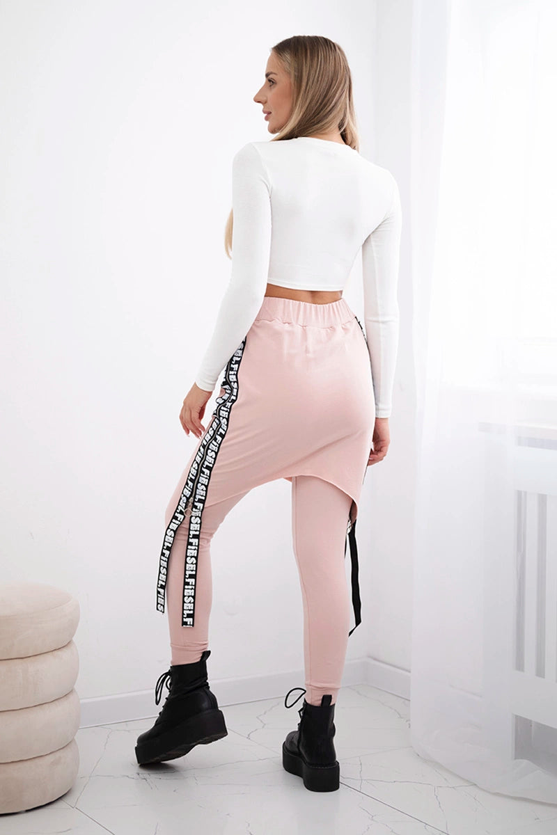 Nohavice/Overal s nápisom selfie tmavo prášková ružová univerzálne