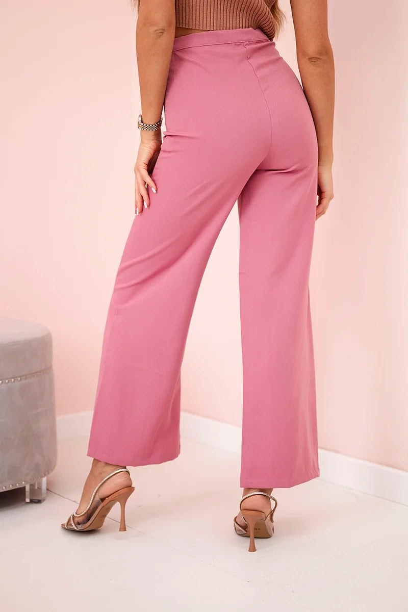 Nohavice so širokou nohavicou tmavo ružová S