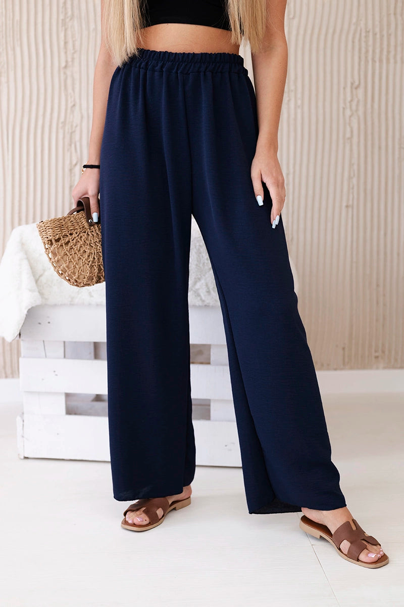 Nohavice so širokými nohavicami námornícka modrá univerzálne