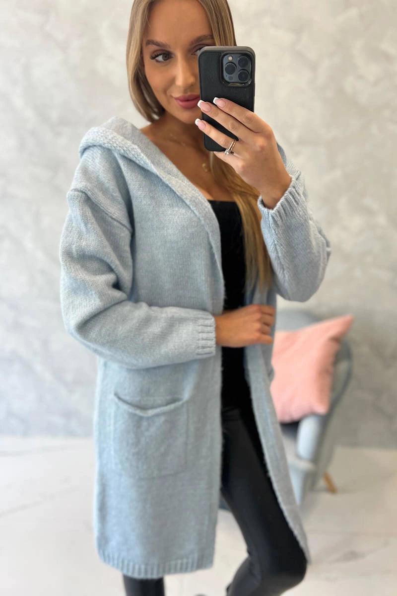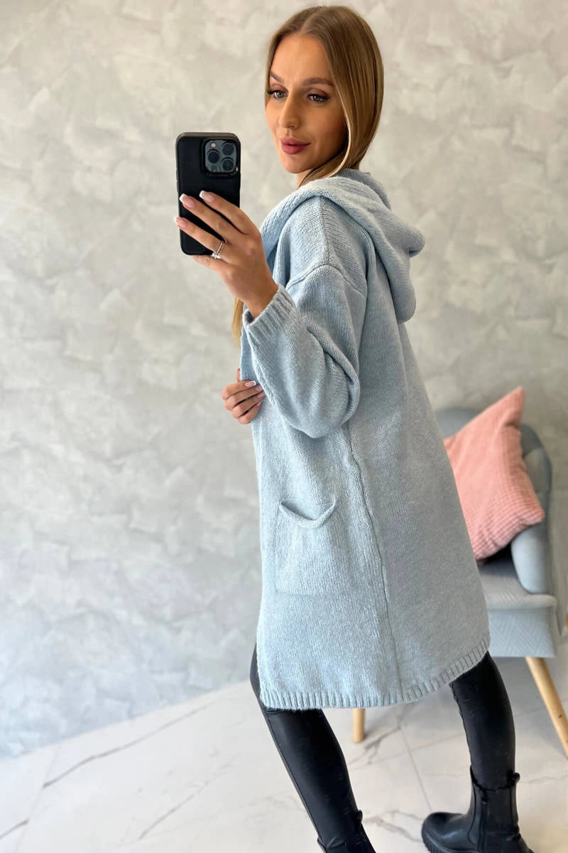 Obyčajný sveter s kapucňou a vreckami modrá univerzálne