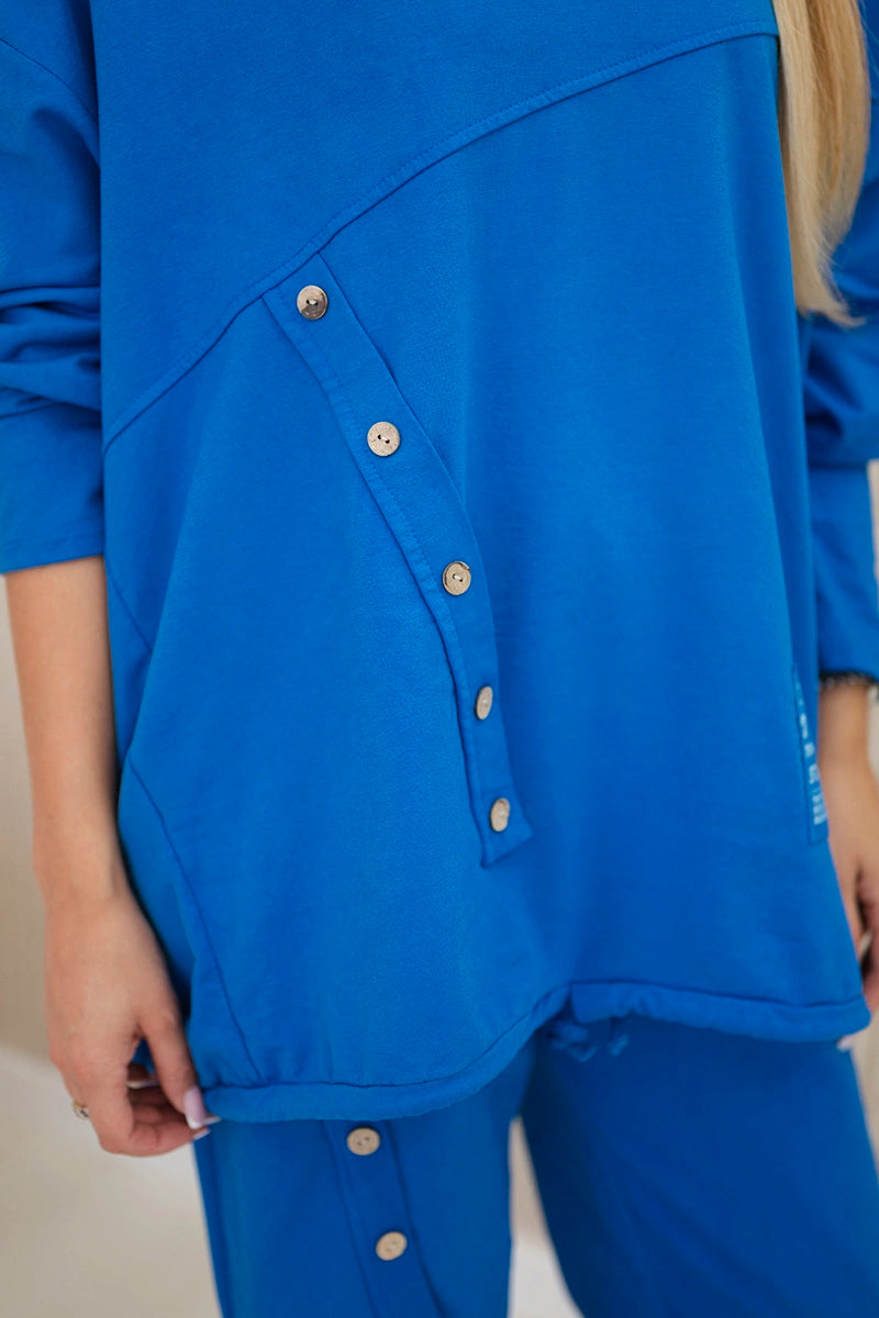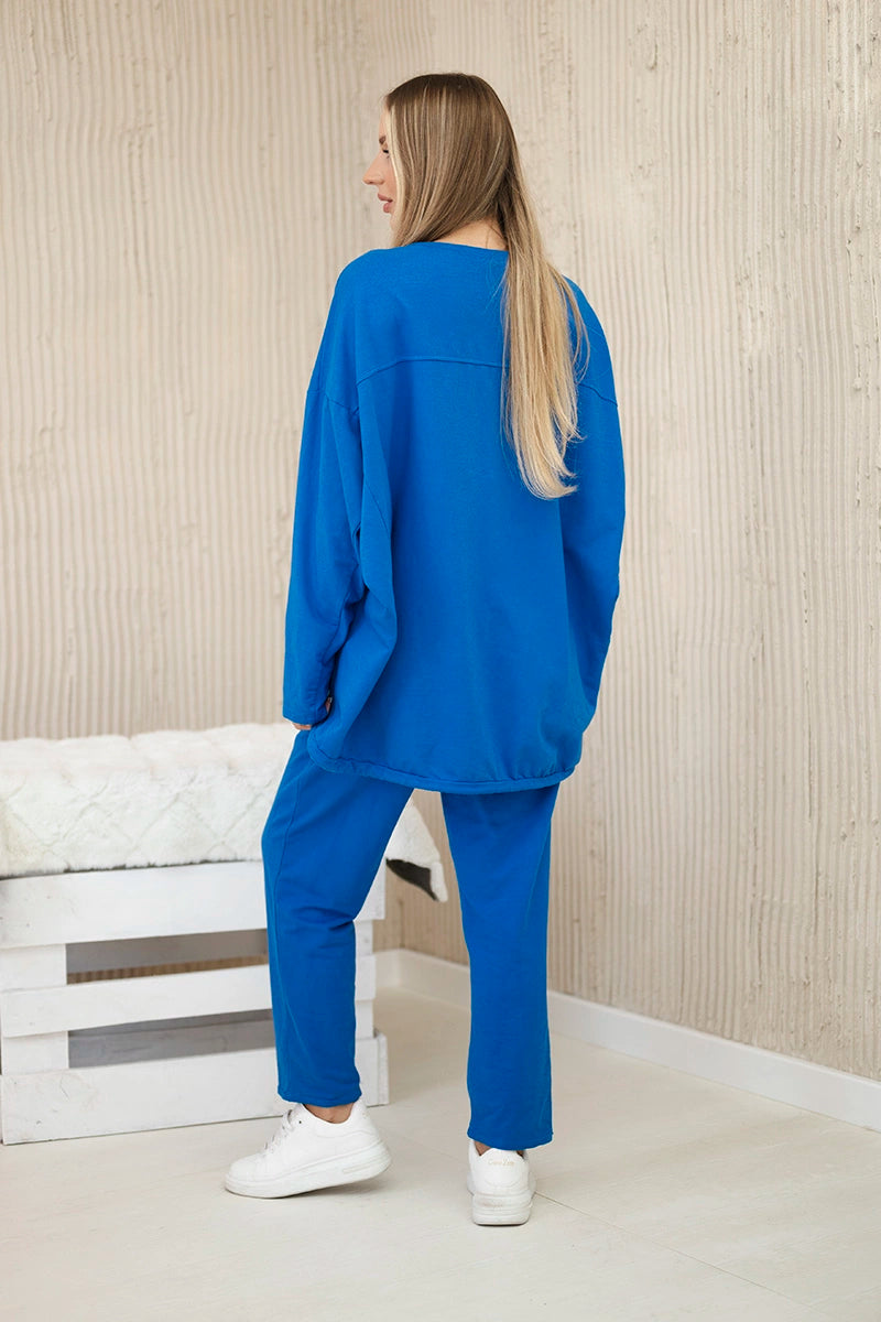 Oversize bavlnená súprava mikinové + nohavice nevädza modrá univerzálne